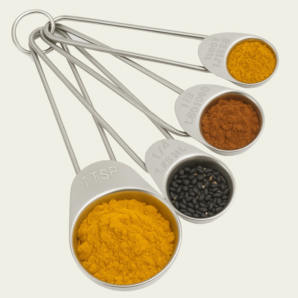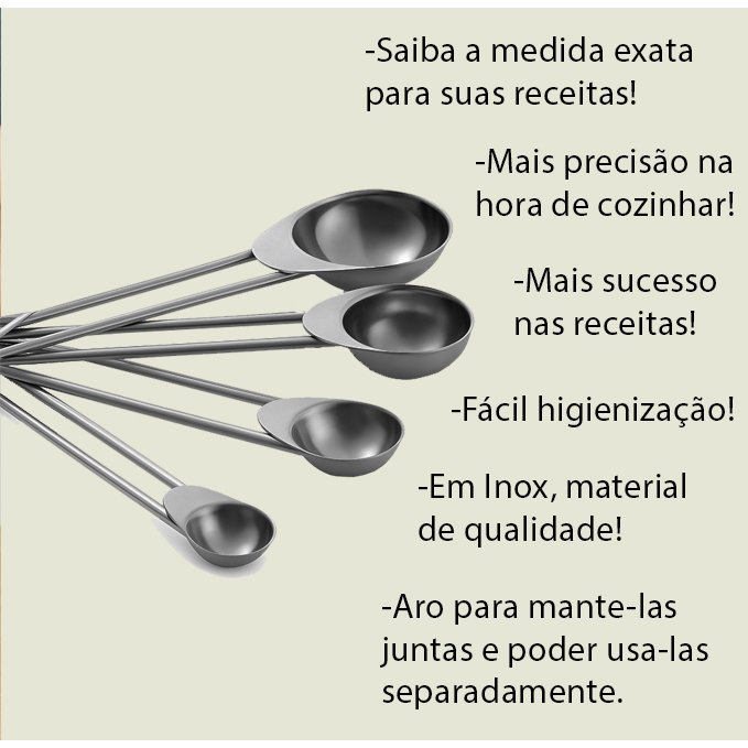 Colheres Medidoras Kit com 4, Próprias Para Ingredientes Secos ou Líquidos Material de Aço Inox