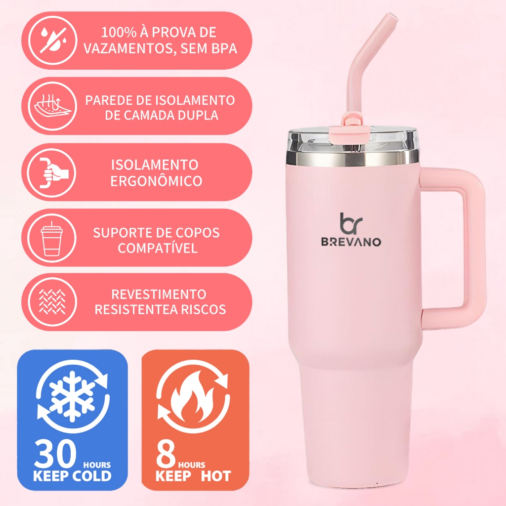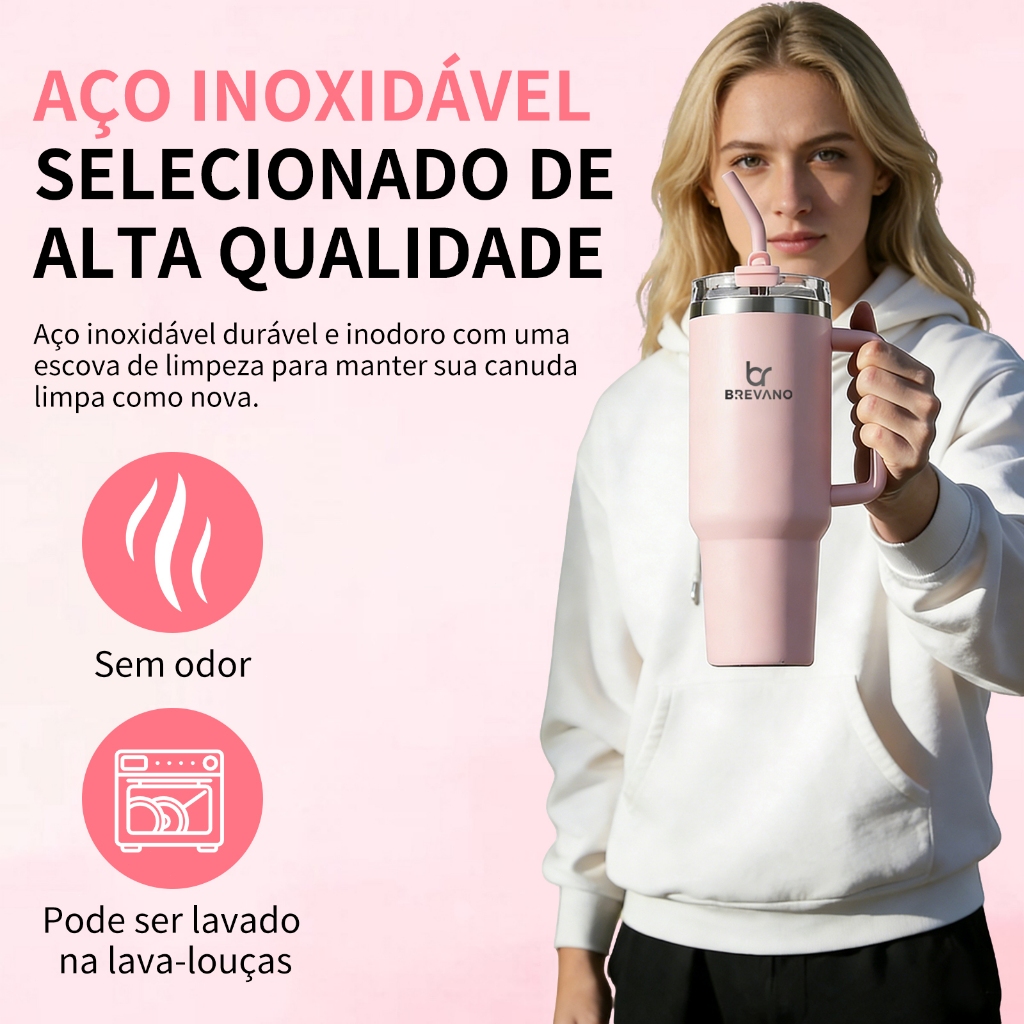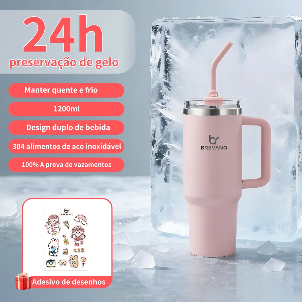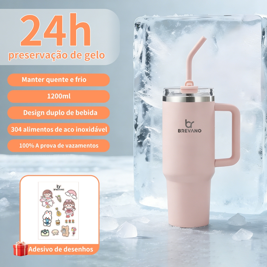 BREAVNO Copo Termico de Aço Inoxidável 1200ml/1.2L com Tampa de Vedação e Canudo de Aço Inoxidável