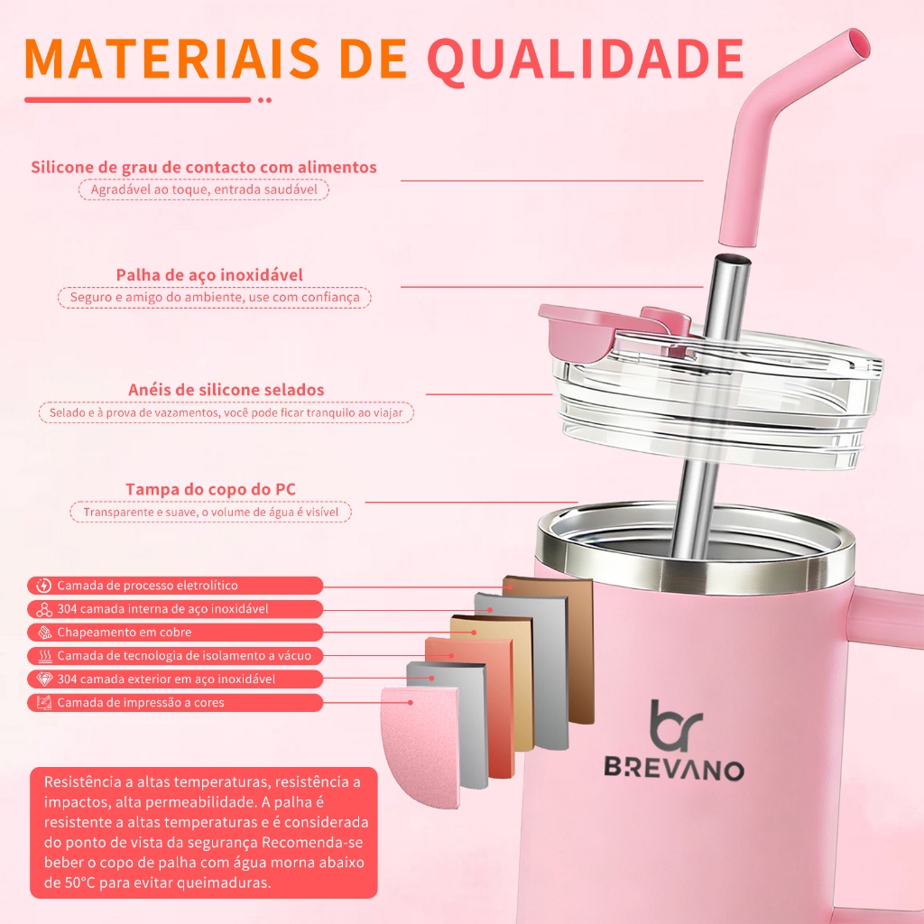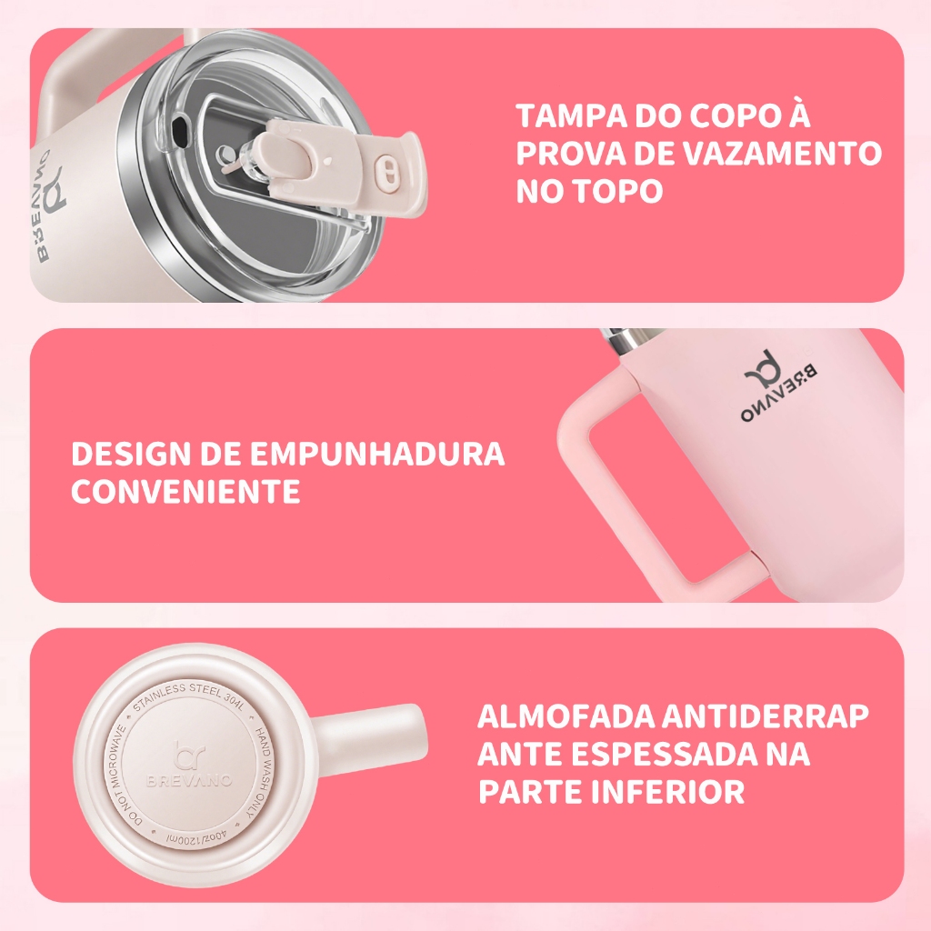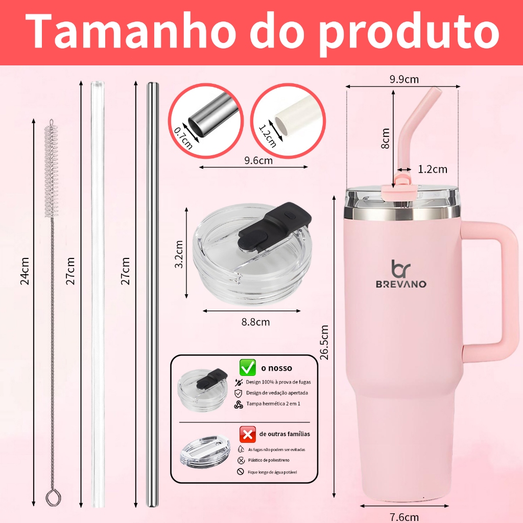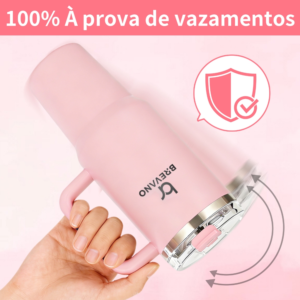 BREAVNO Copo Termico de Aço Inoxidável 1200ml/1.2L com Tampa de Vedação e Canudo de Aço Inoxidável