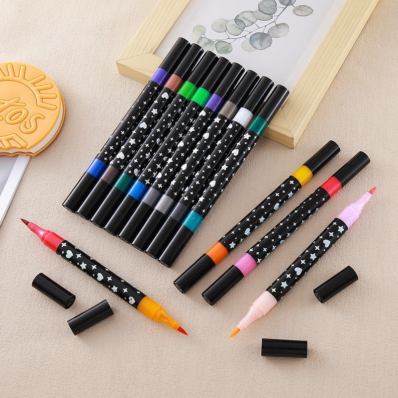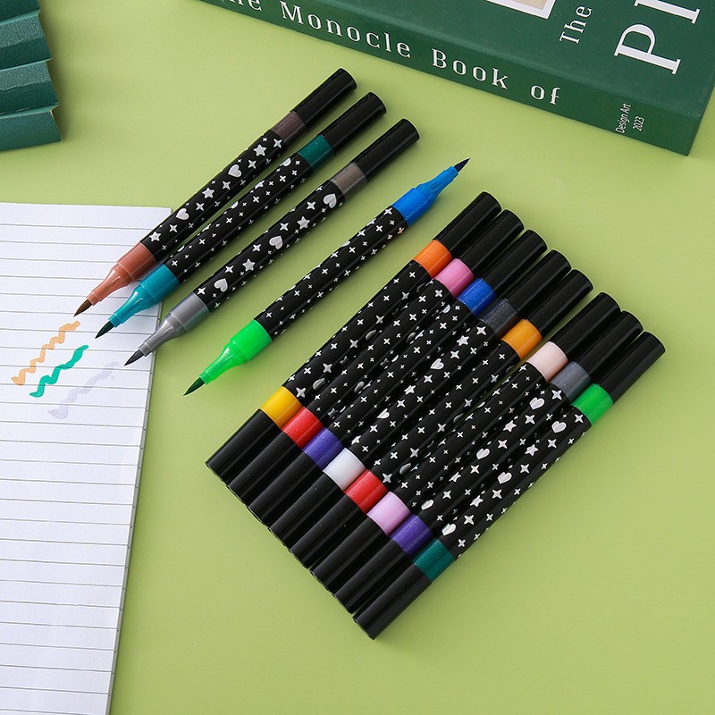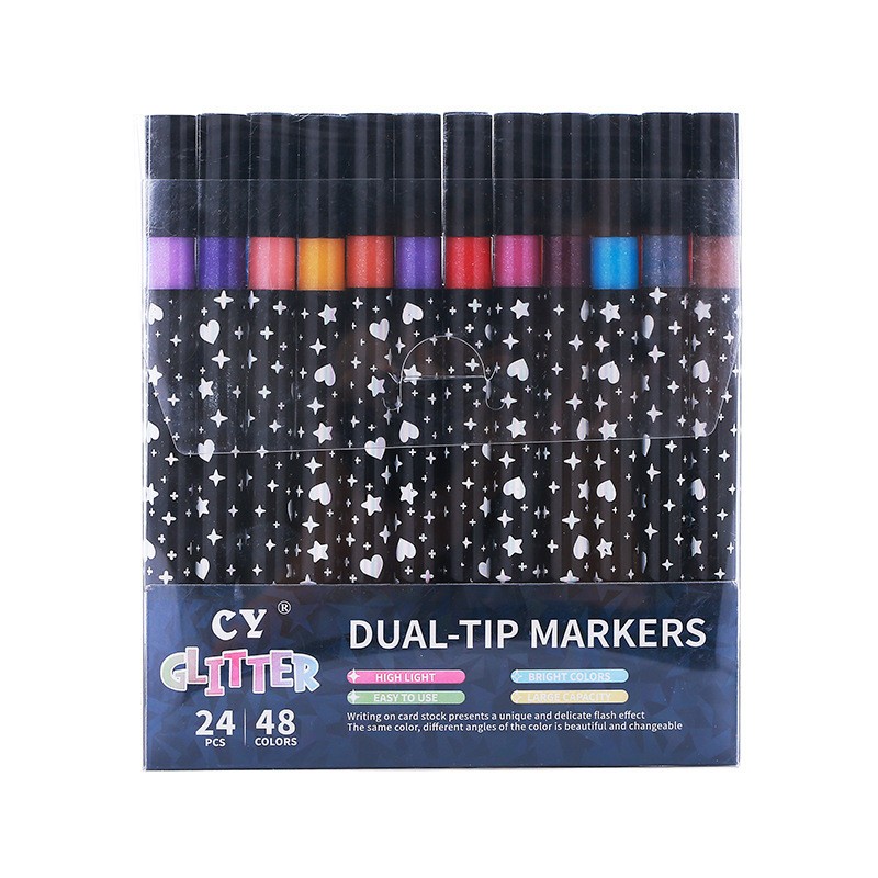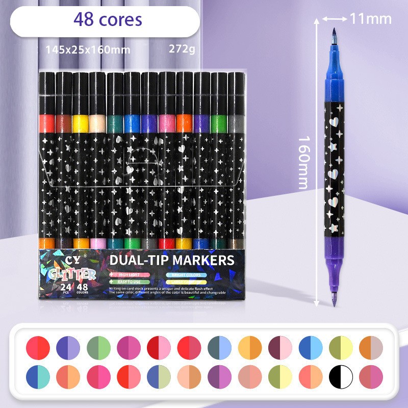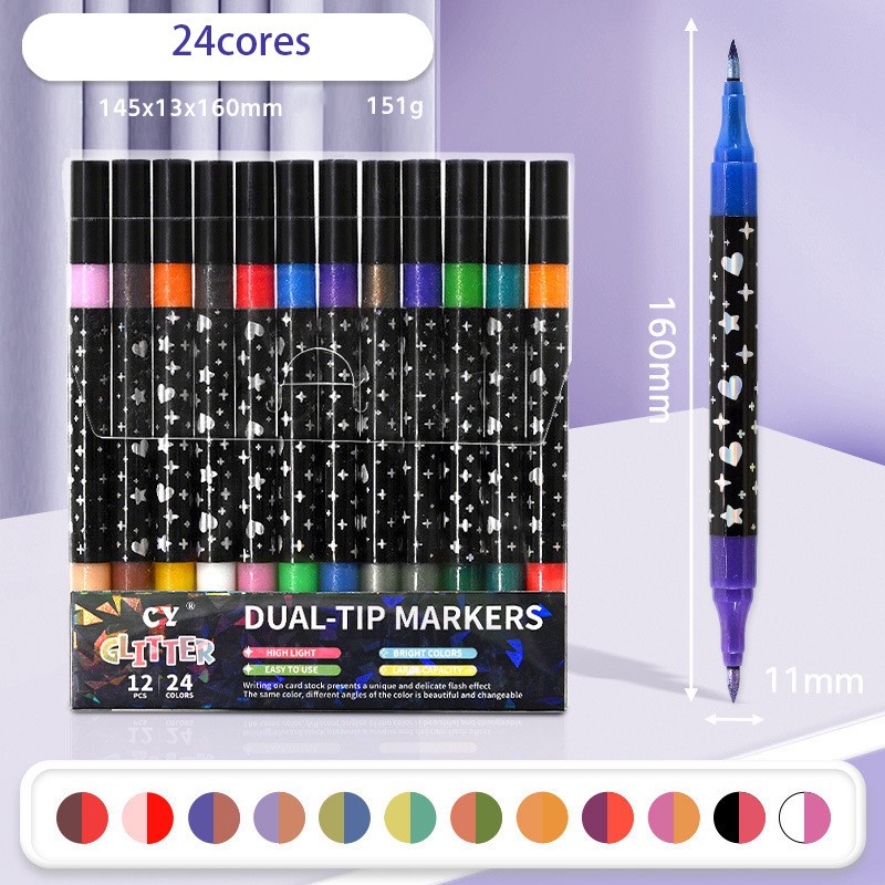 Marcador metálico de glitter de cabeça dupla marcador de cabeça dupla brilhante 2/24/48 peças