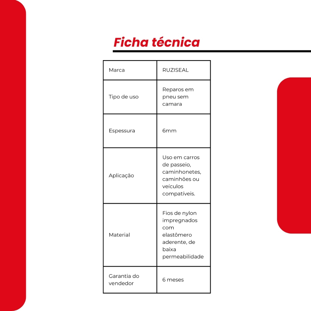 Refil Macarrão RUZI Ruziseal 100mm Caixa C/60 Un Vipal Reparo P/ Pneu Laranja-escuro
