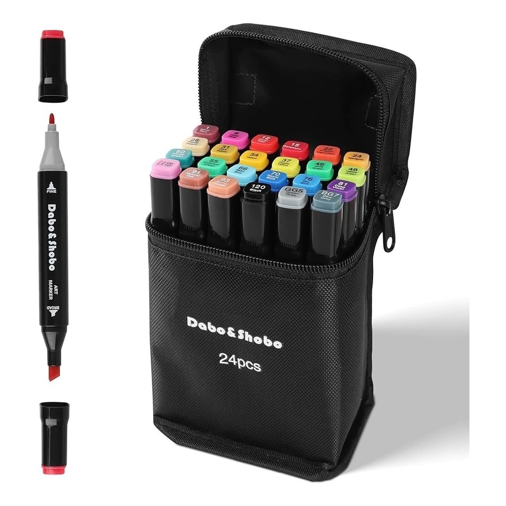 24/30/36/48/60/80/100 Cores Caneta Marcadora De Cabeça Dupla Oleosa Montagem Artística Para Estudantes Material Escolar
