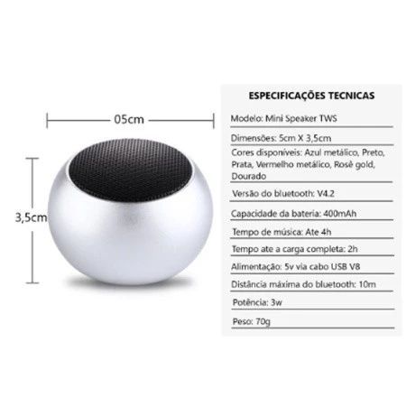Mini Caixinha De Som De Metal Bluetooth Amplificada de 3W Potente