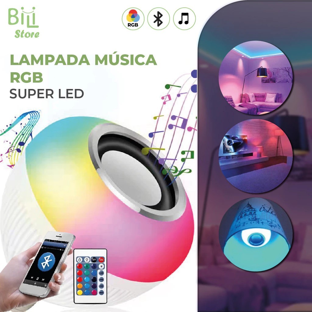 Lampada Bluetooth Com Led Rgb Musica 12w + Controle Remoto- com Socket Padrão