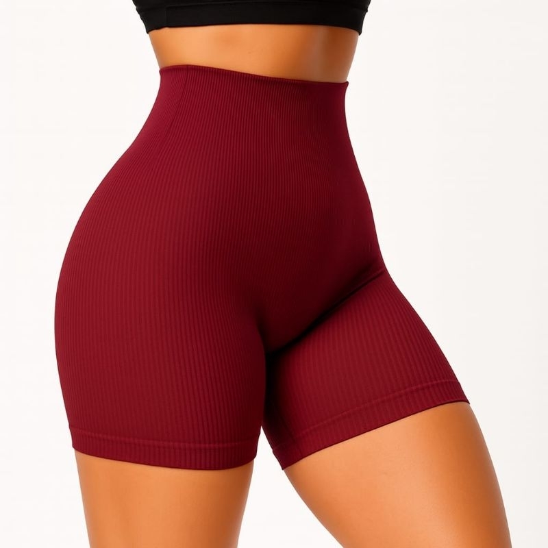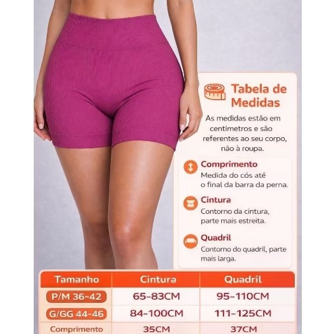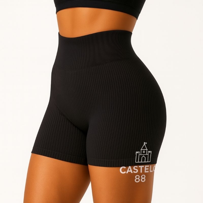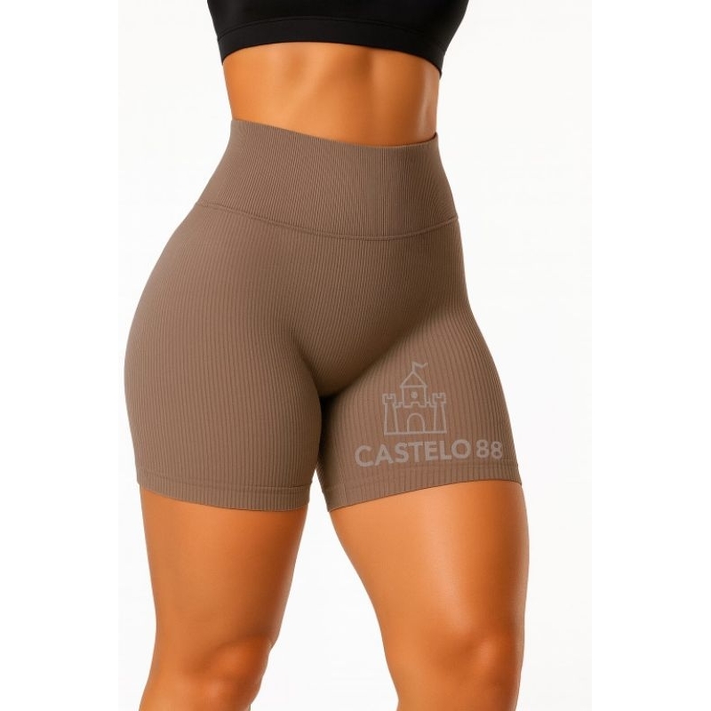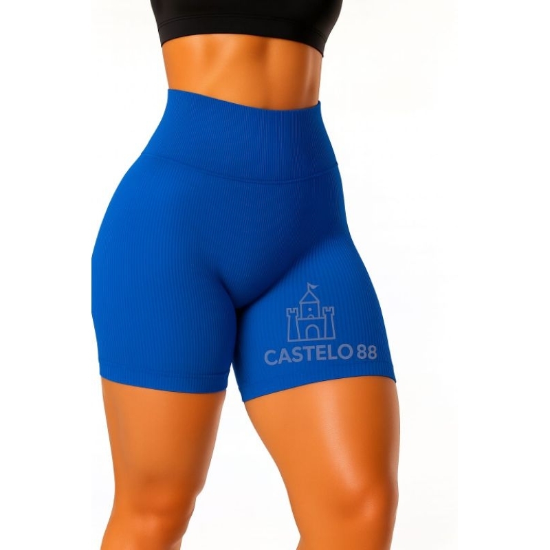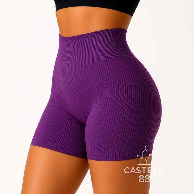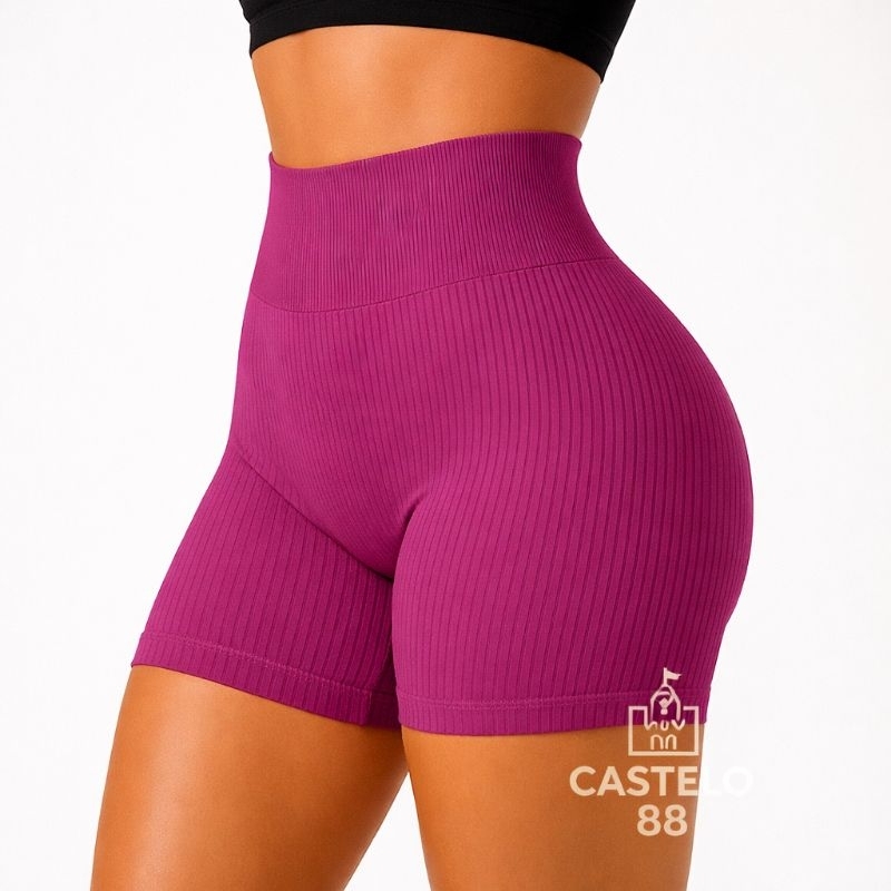 Short Fitness Feminino Canelado Super Premium Cintura Alta Zero Transparência