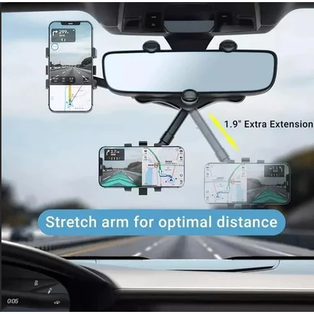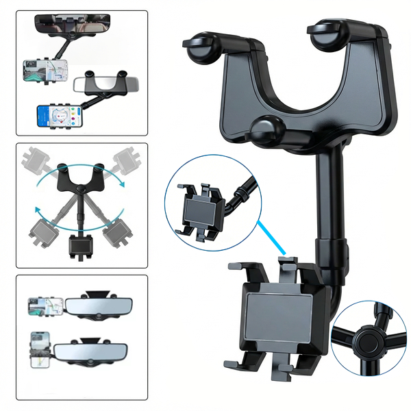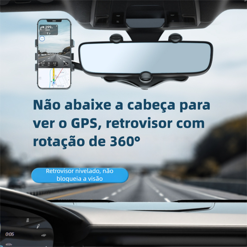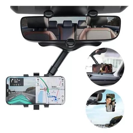 Suporte para Celular Universal de Retrovisor de Carro - Extensível, Giro 360º, Apoio Seguro