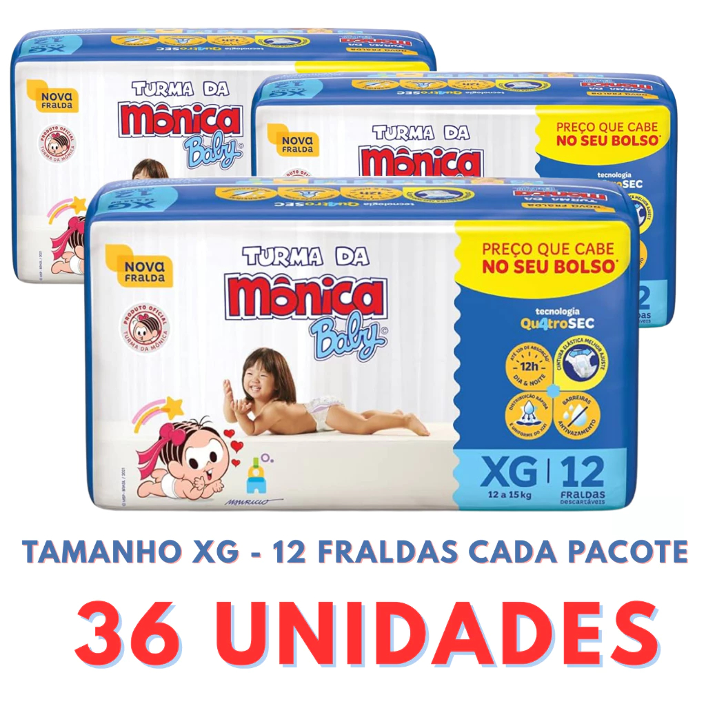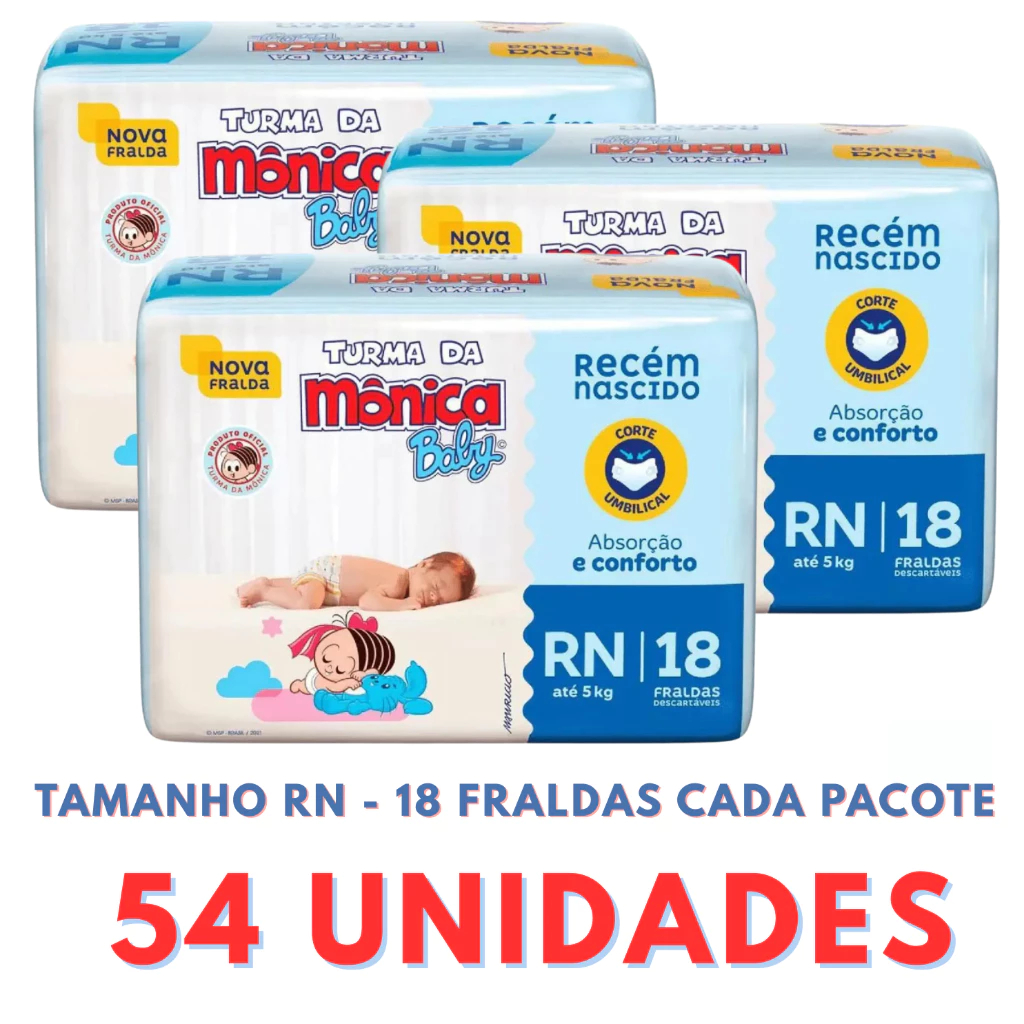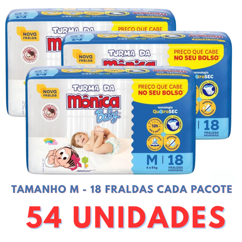 Fraldas Turma da Mônica 3 Pacotes + Sabonete Infantil Até 12h de Absorção