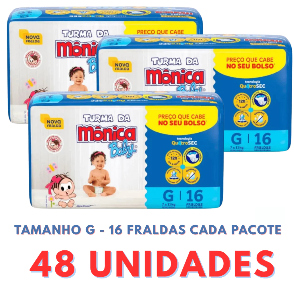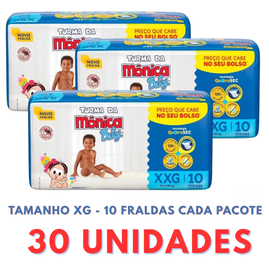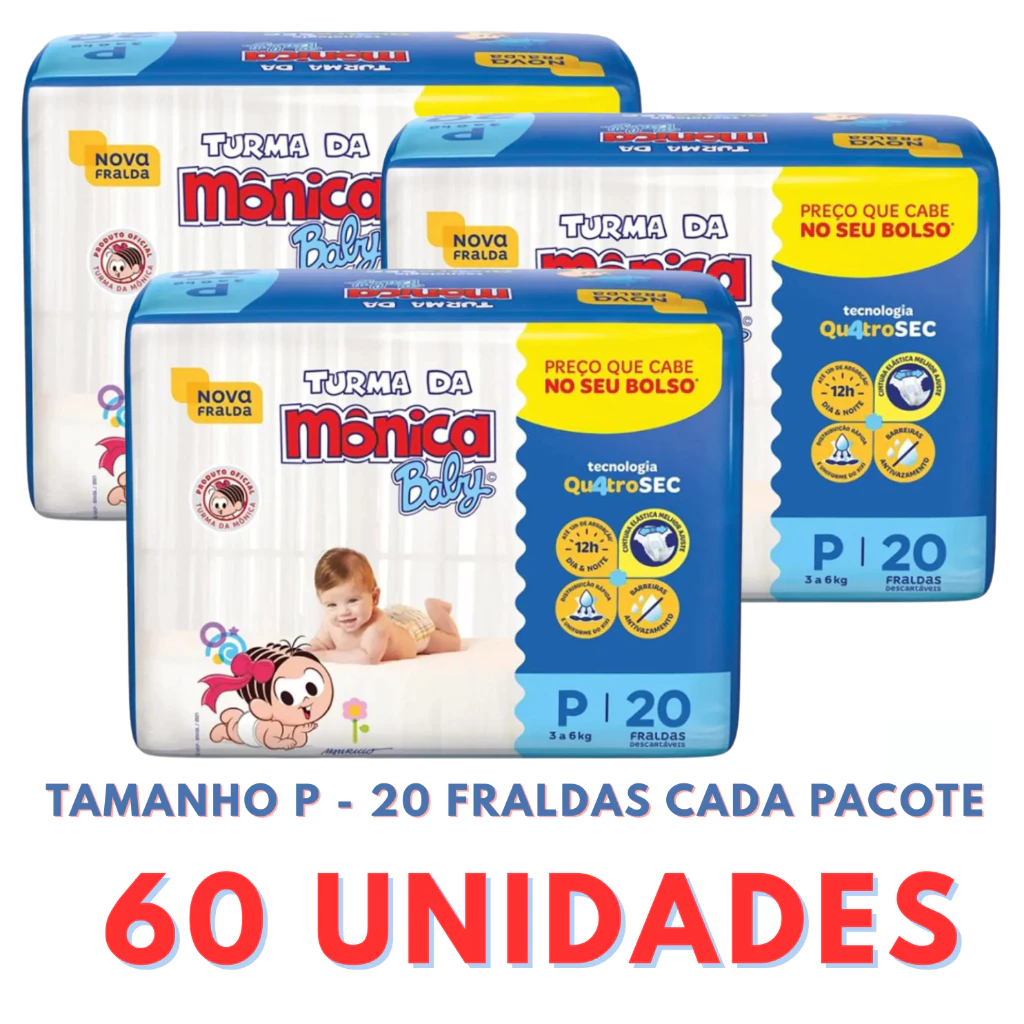 Fraldas Turma da Mônica 3 Pacotes + Sabonete Infantil Até 12h de Absorção