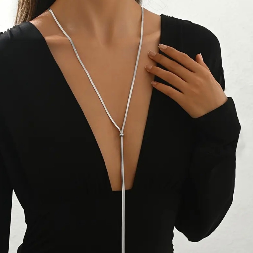 Colar Feminino Longo Regulável Minimalista – Gargantilha Moderna com Corrente Fina Banhada a Ouro 18K e Prata 925