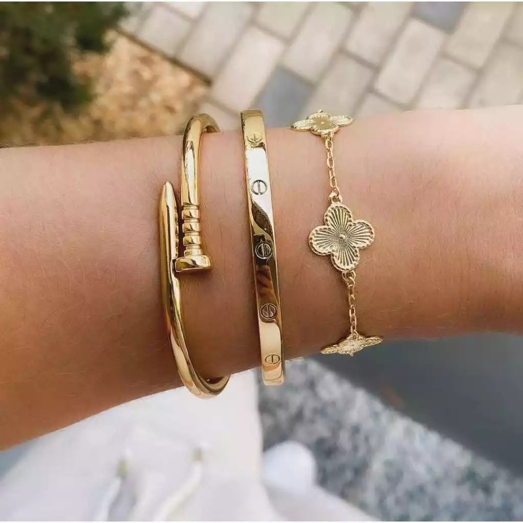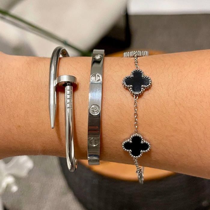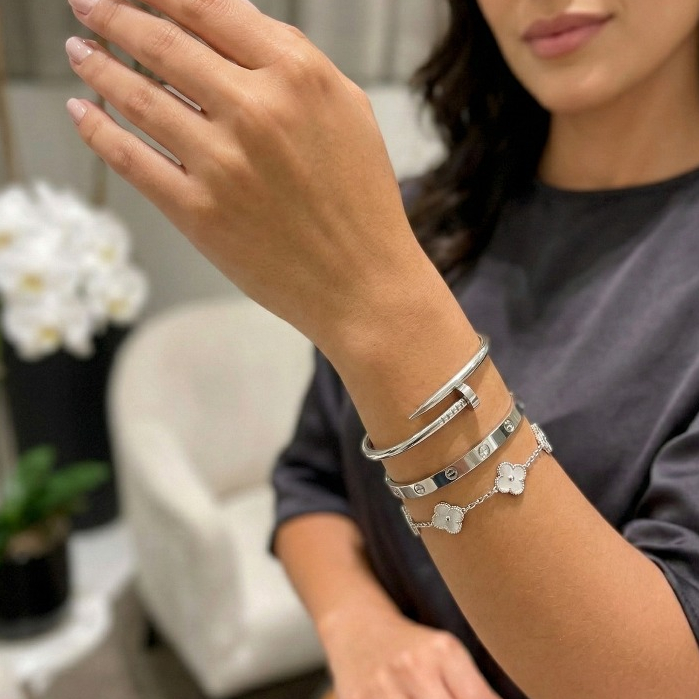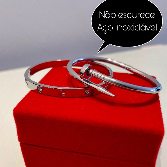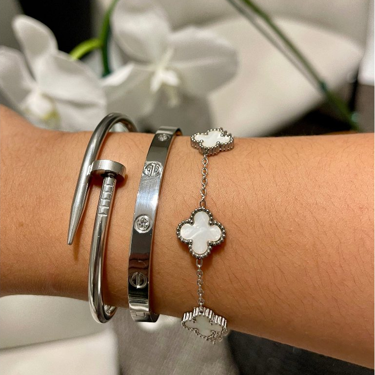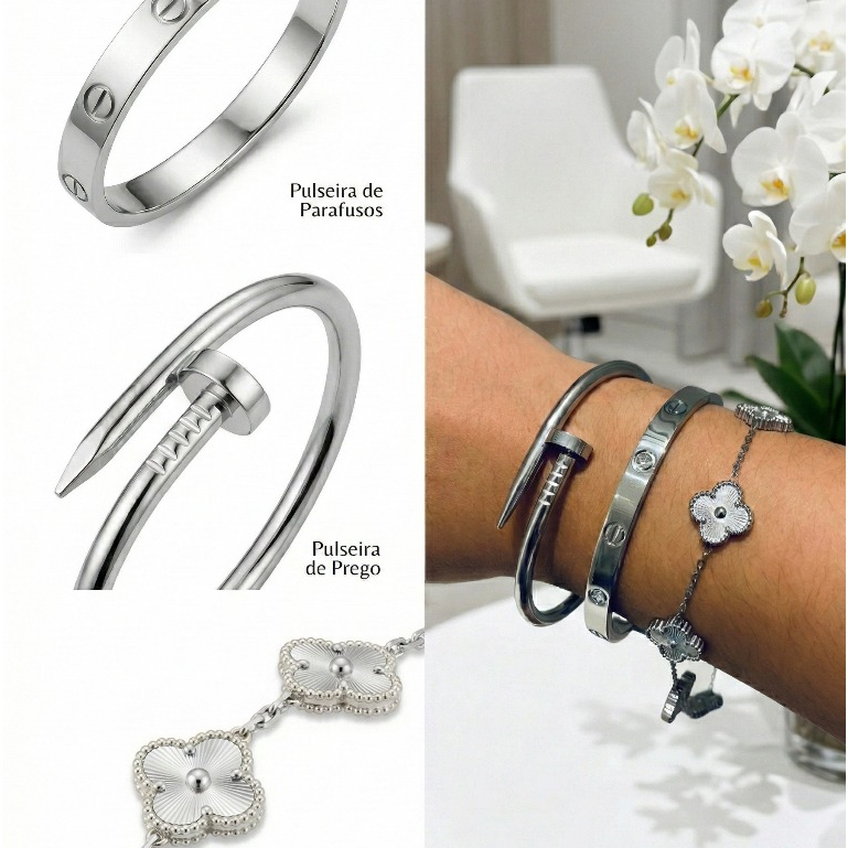 Conjunto de Pulseiras Prata Aço Inoxidável Femininas Blogueira Tendência Conforto Charme Elegância Moda