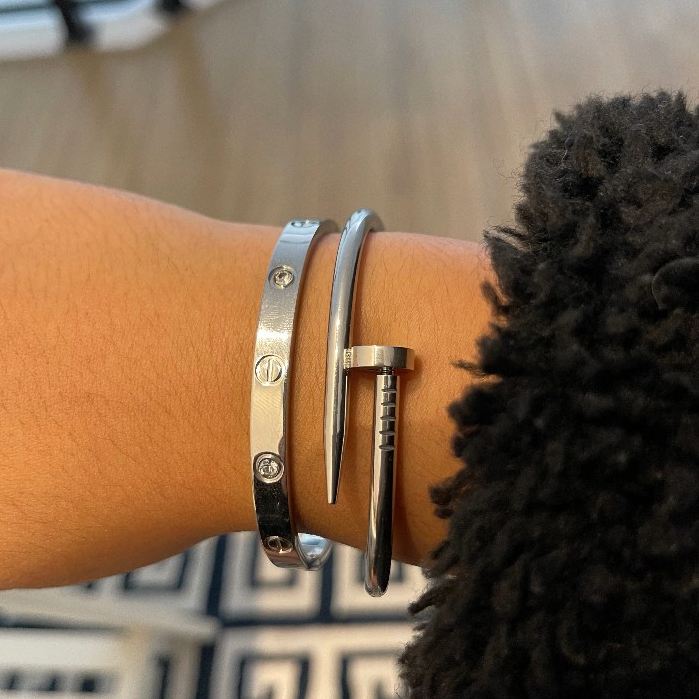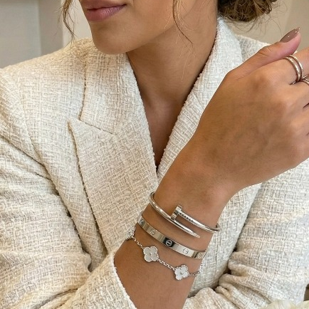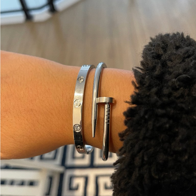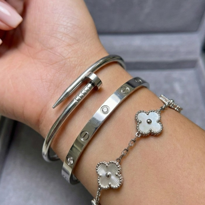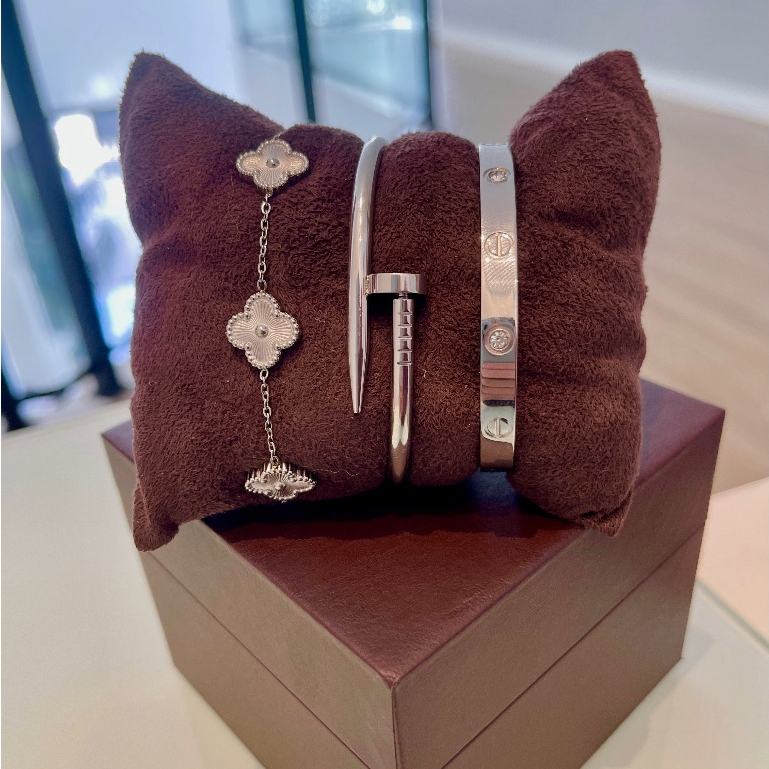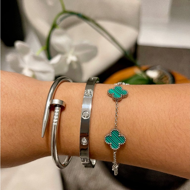 Conjunto de Pulseiras Prata Aço Inoxidável Femininas Blogueira Tendência Conforto Charme Elegância Moda