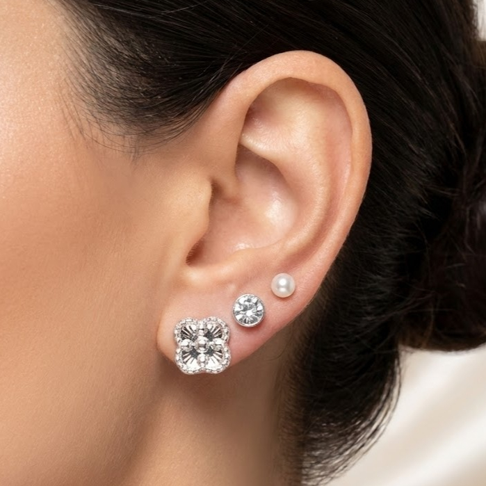 TRIO DE BRINCOS CORAÇÃO FOLHEADO TRIO PÉROLA COM TREVO - Kit Versátil e Delicado para o Dia a Dia!