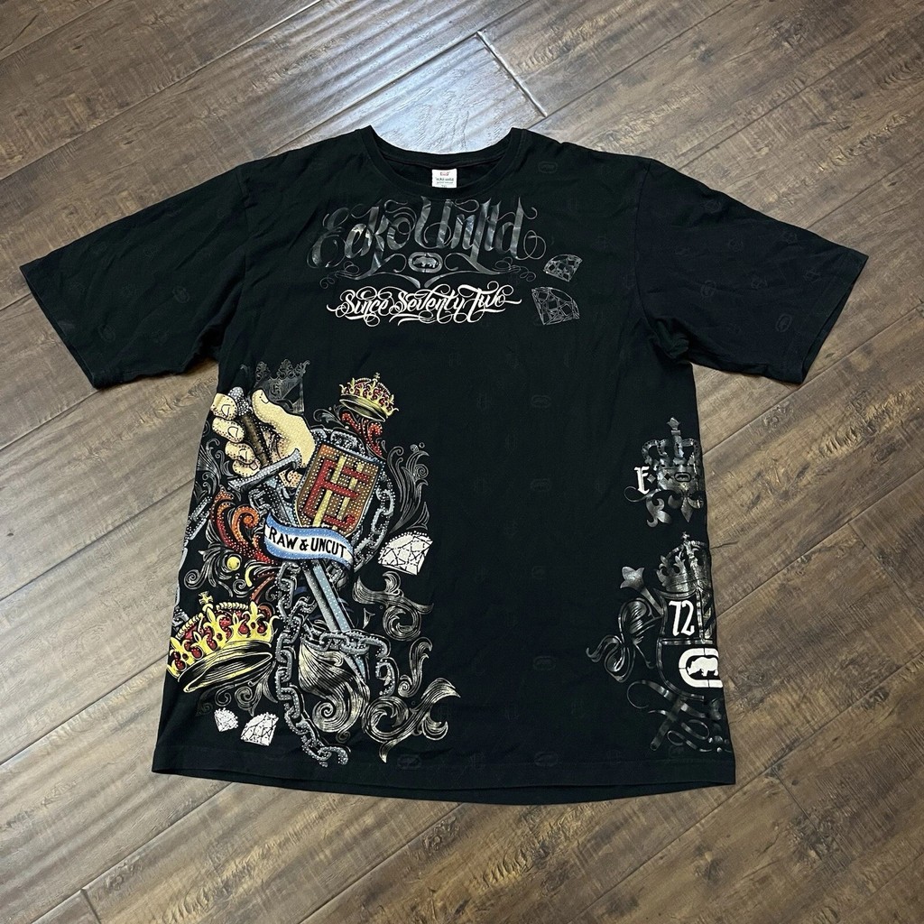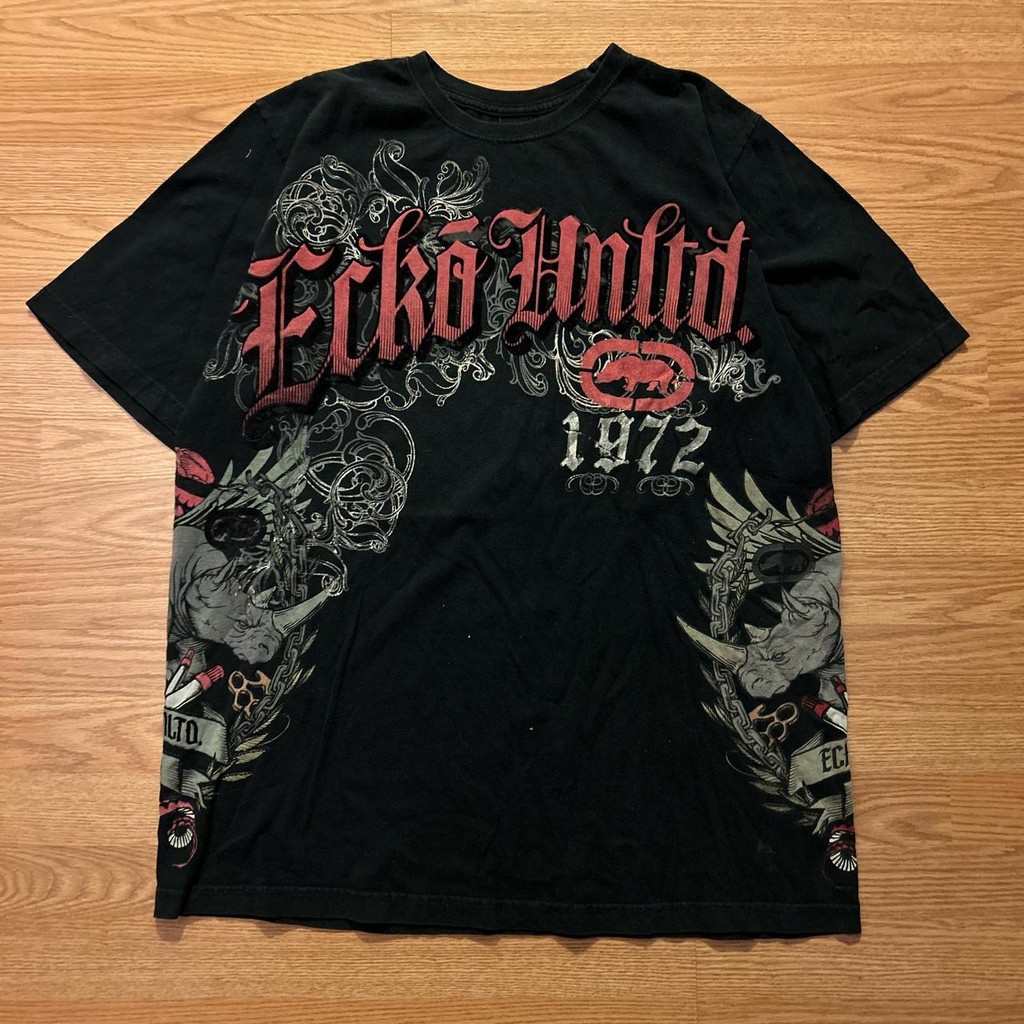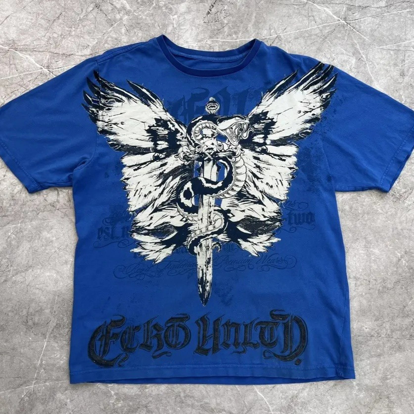 Retro Ecko Rhino Padrão Camiseta Y2K Grande Clássico Versátil Street Wear Algodão Casal Top