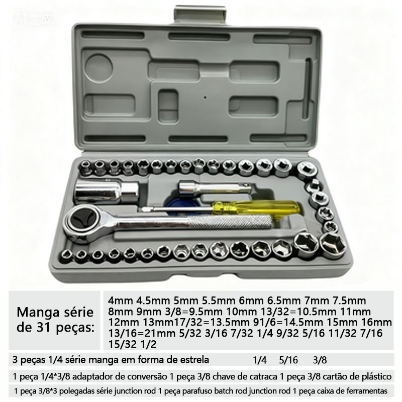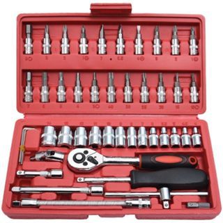 Kit Ferramentas 10/40/46 Peças Aço Cromo Vanádio c/ Estojo, Perfeito p/ Carro, Moto e Casa