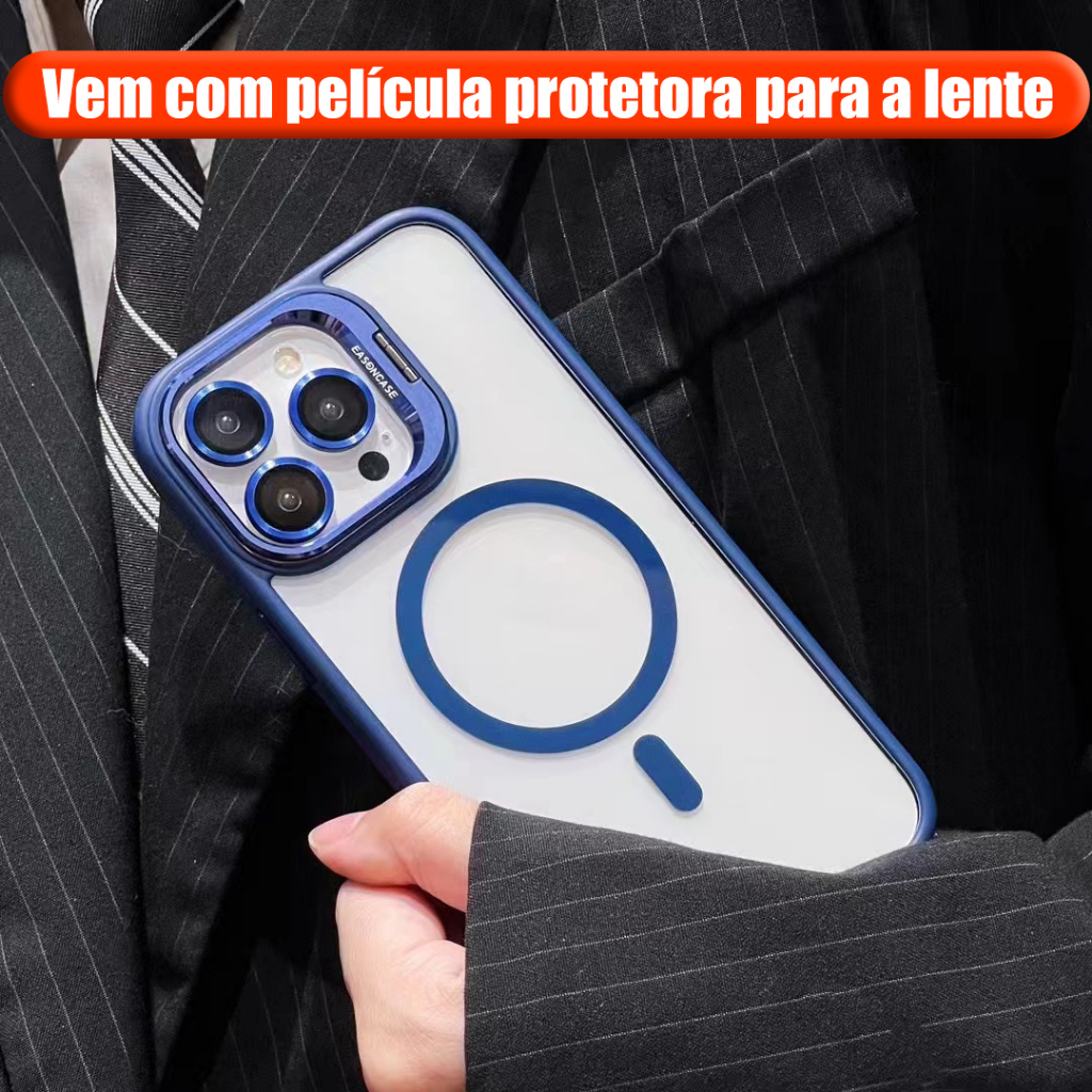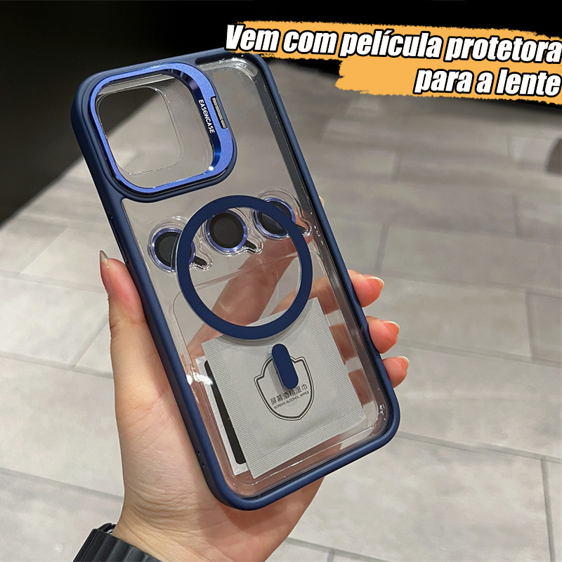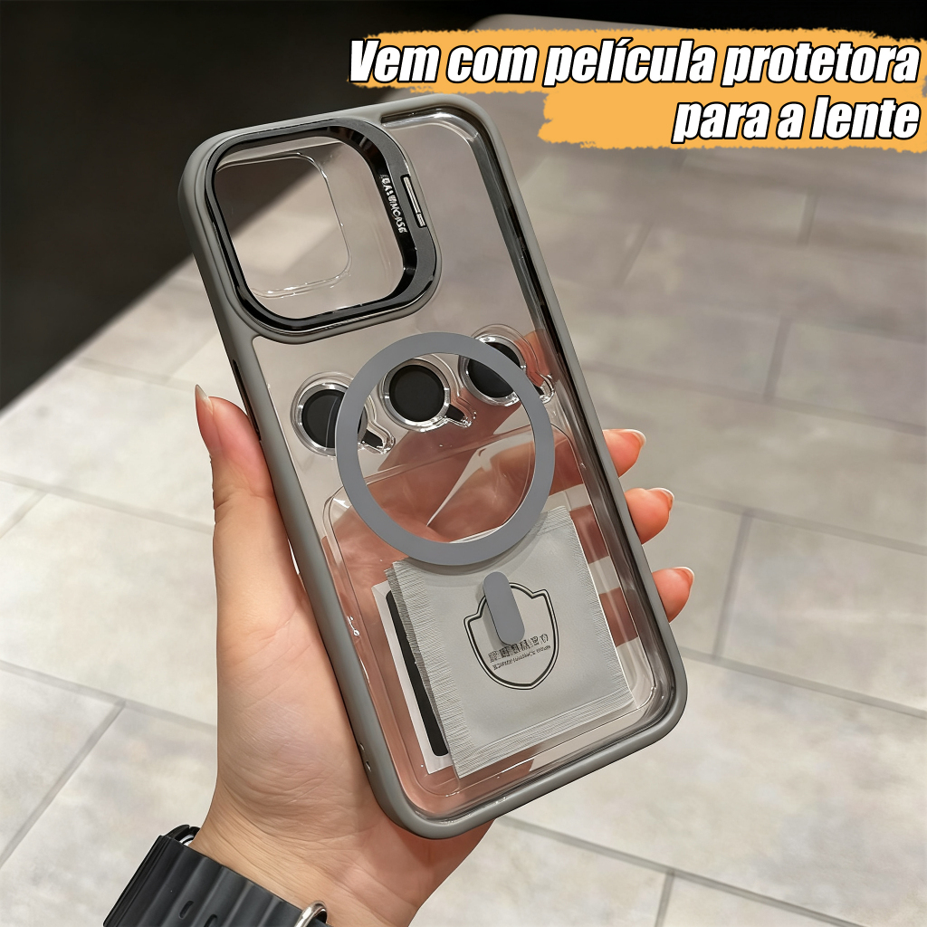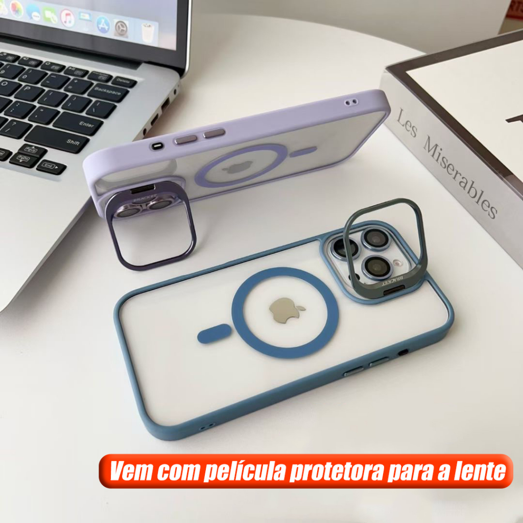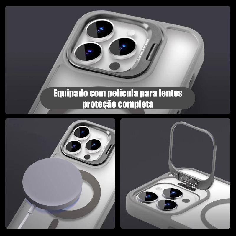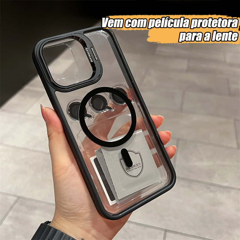 Capa Magsafe iPhone, Kit com Suporte e Película de Câmera, para 11 12 13 14 15 16 Pro Max