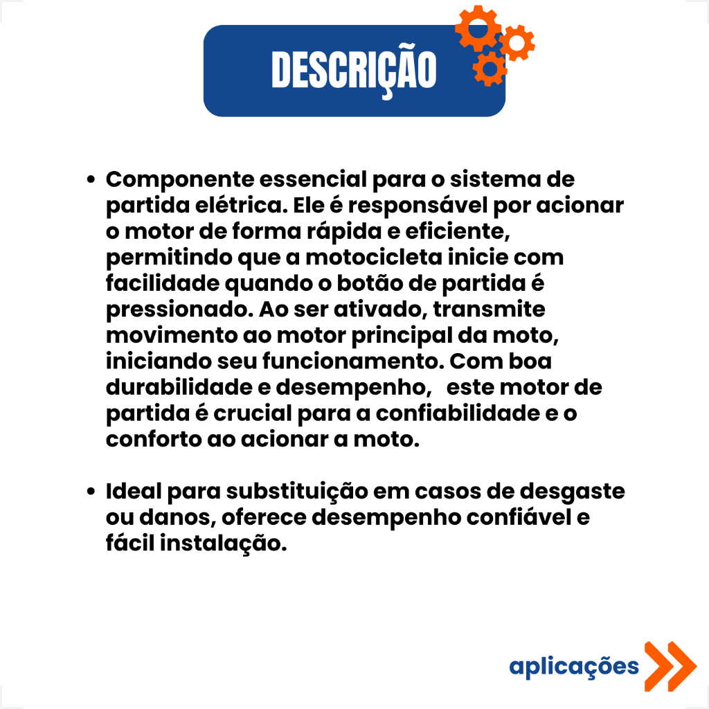 Motor Partida Honda Biz Pop 110i 2010 2011 2012 2013 2014 2015 2016 Reposição Peça Original MOTO