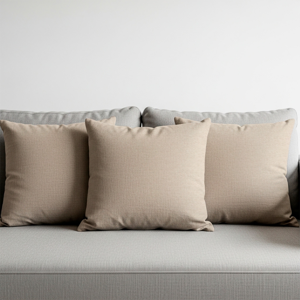 Kit 3 Capas De Almofada Efeito Linho Lisa Bege Liso 45x45 Cru Moderna Minimalista Zíper Invisivel