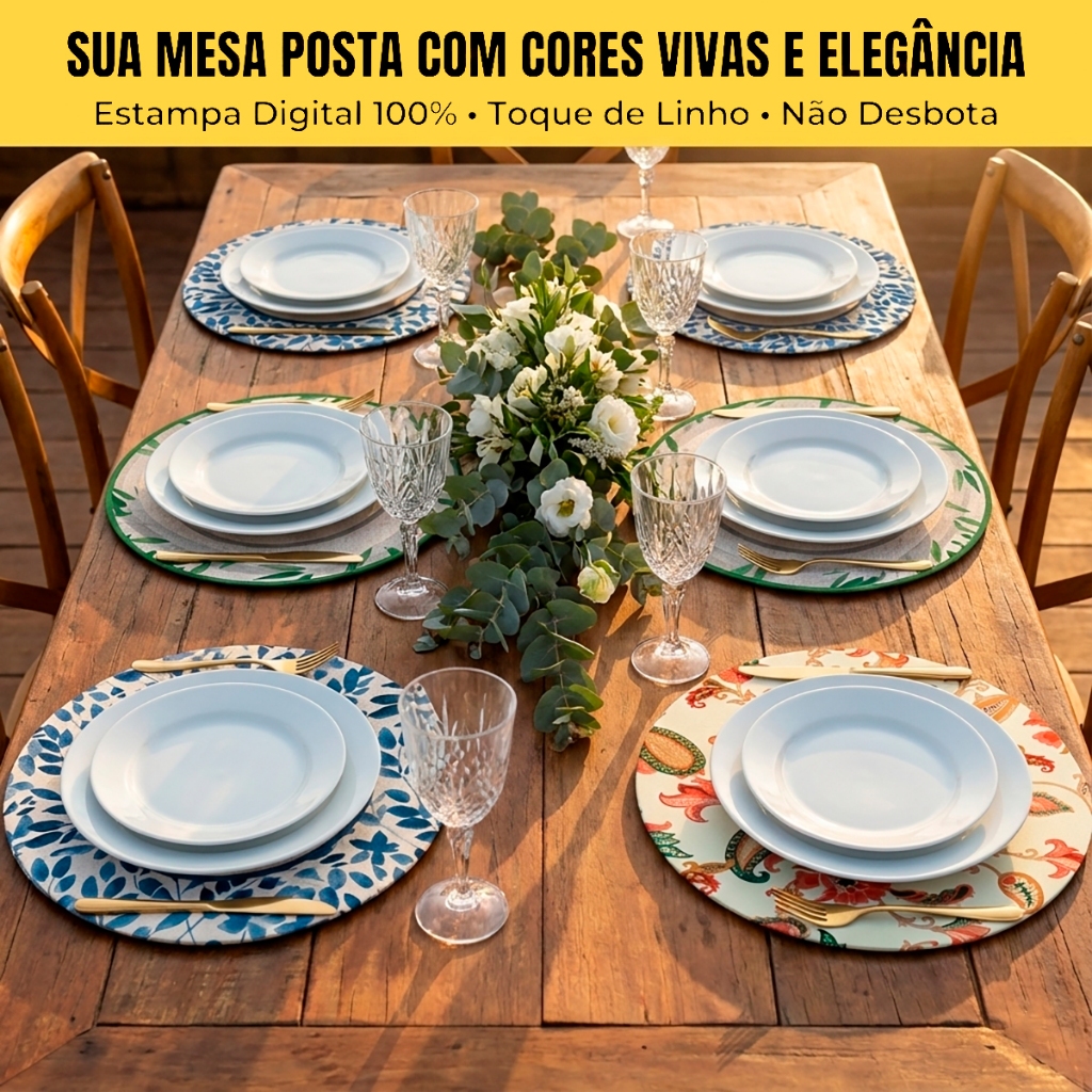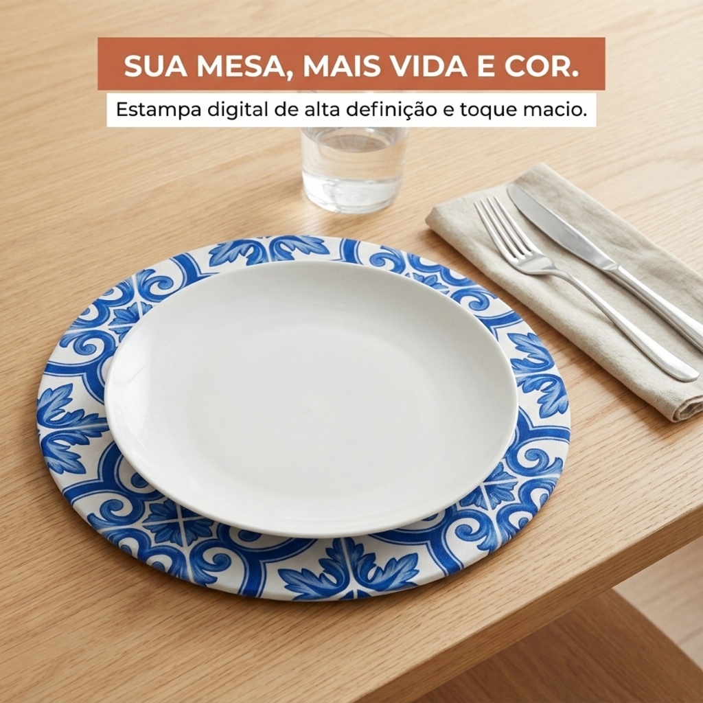 Kit 2/4/6/8 Capas Sousplat 35cm Várias Cores Estampa 100% Digital Lavável Suplat Soupla Mesa Posta