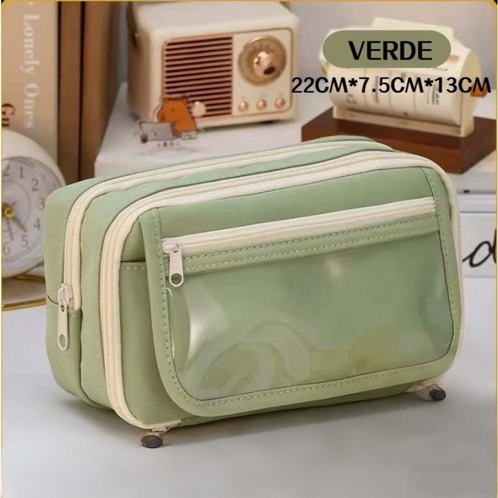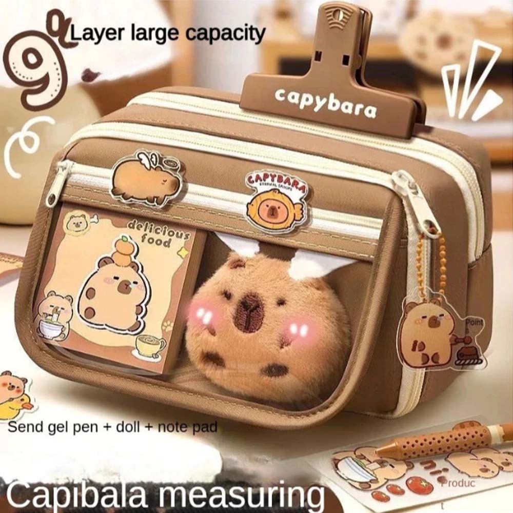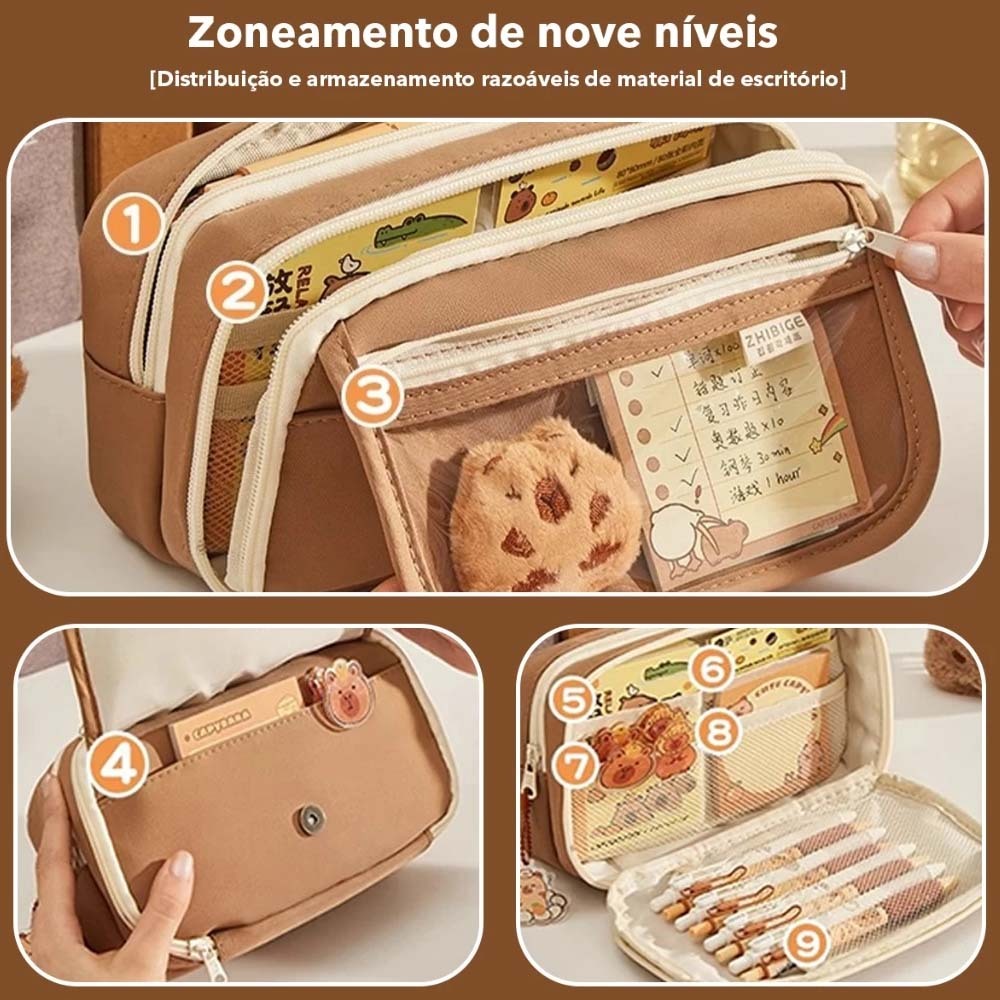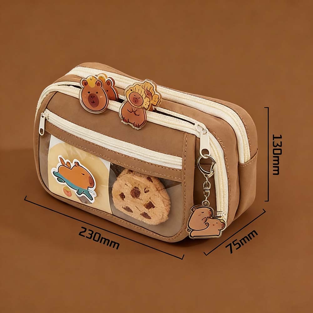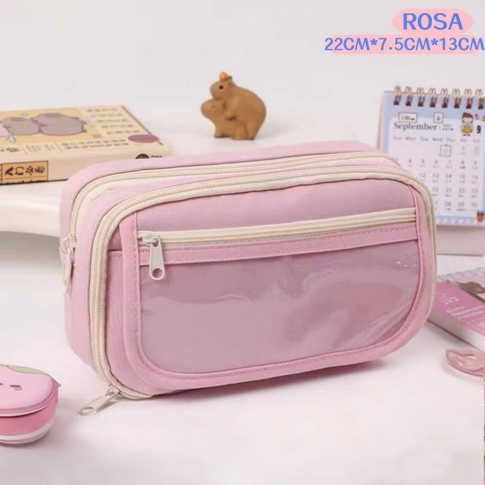Estojo de Lápis Transparente Capivara Kuromi Grande Capacidade com Zíper Impermeável Caixa de Armazenamento de Material