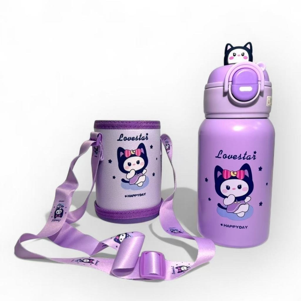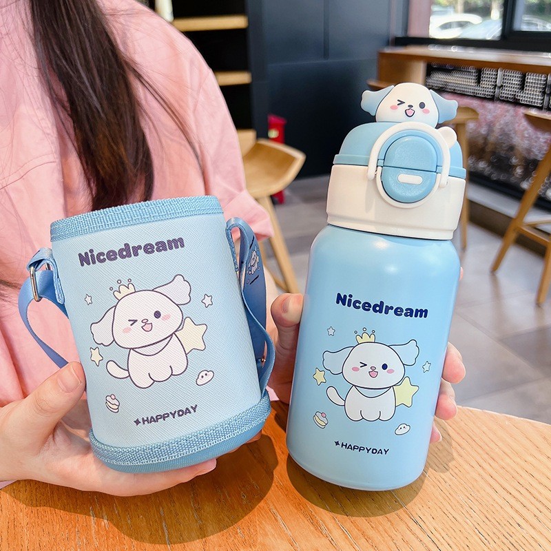 Garrafa Térmica Infantil de 500 ml Aço Inox 304 Com Alça Bolsa De Armazenamento, Canudo e Caneca
