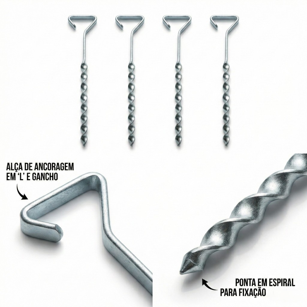 Kit 4 Estacas Âncoras Pino Haste Fixador Barraca Tenda Gazebo Redes Suporte Rosqueável Perfuração De Solo Fixação Cordas