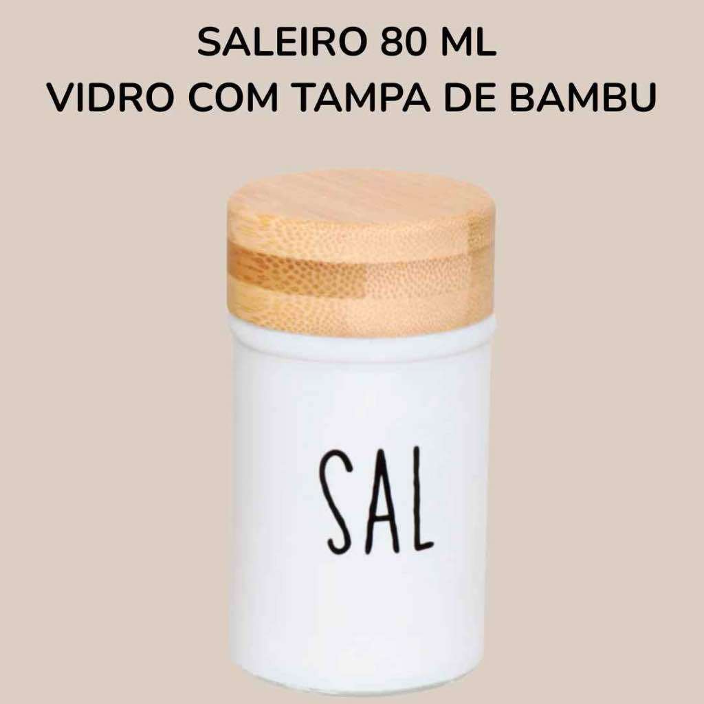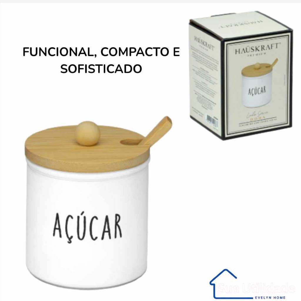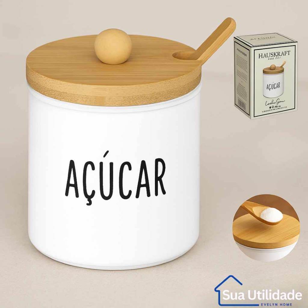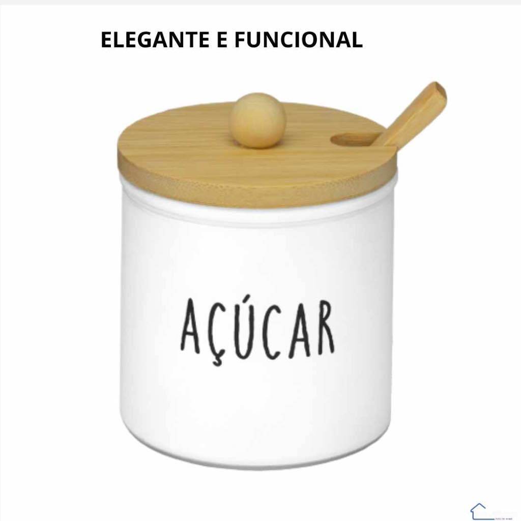 Pote de Açúcar Branco em Vidro 300 ml Tampa de Bambu Colher Açucareiro Organize sua Cozinha para Café Chás Panificação