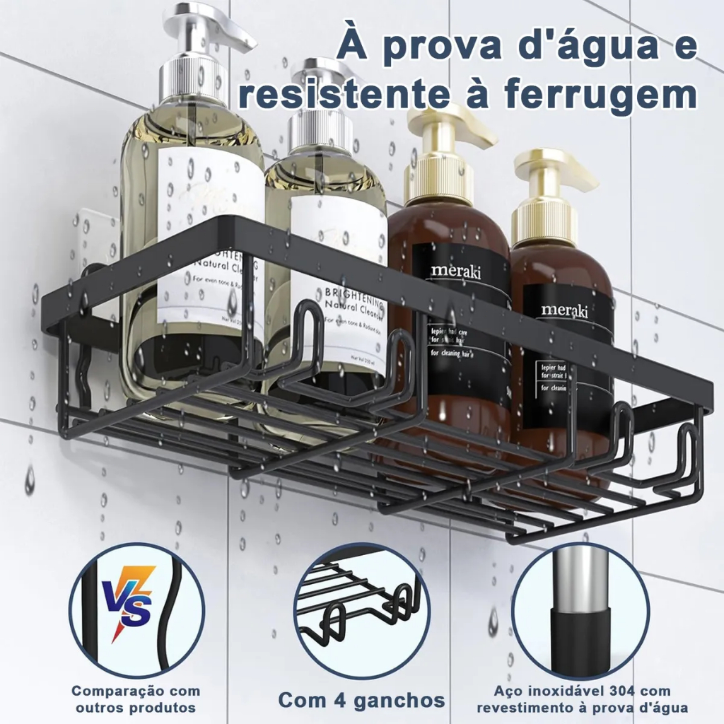Kit 5 Prateleiras Suporte Com Alto Adesivos Para Parede Banheiro Cozinha lavanderia Shampoo Sabonete