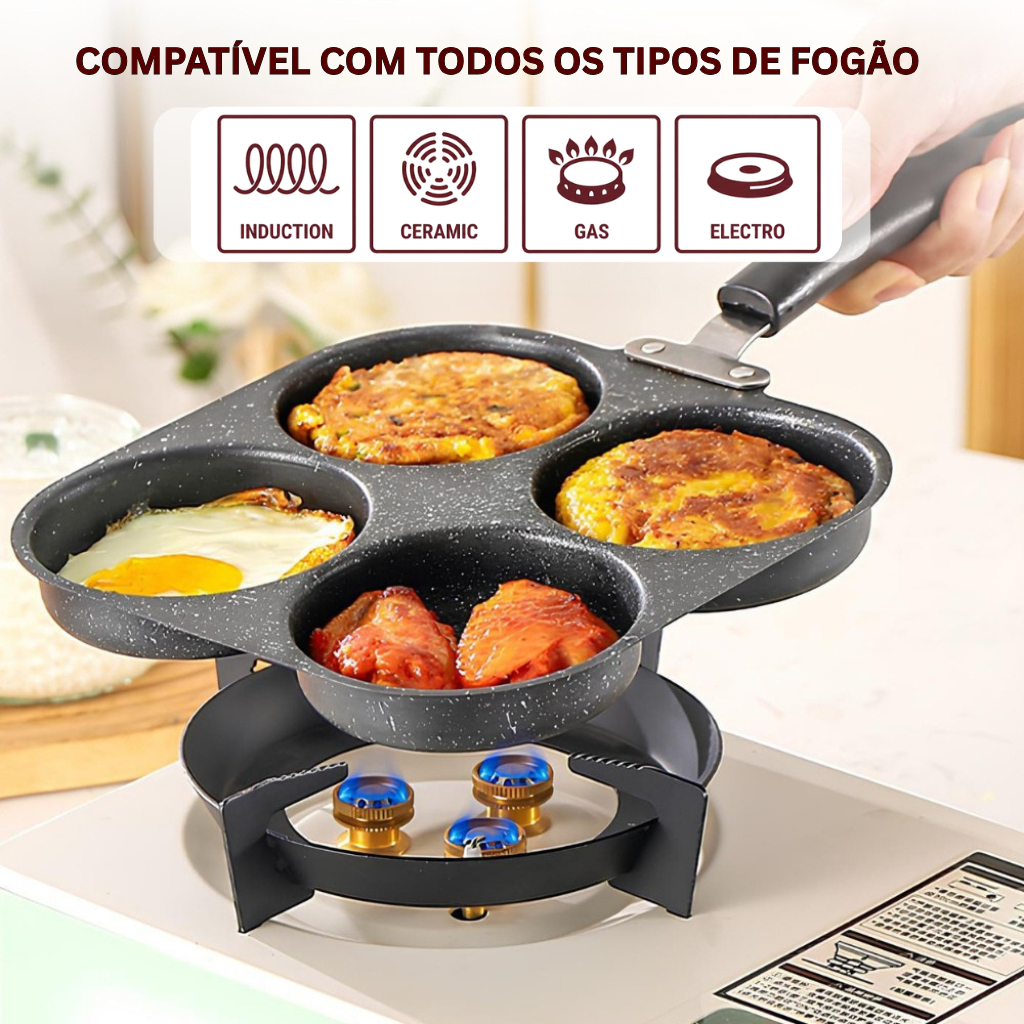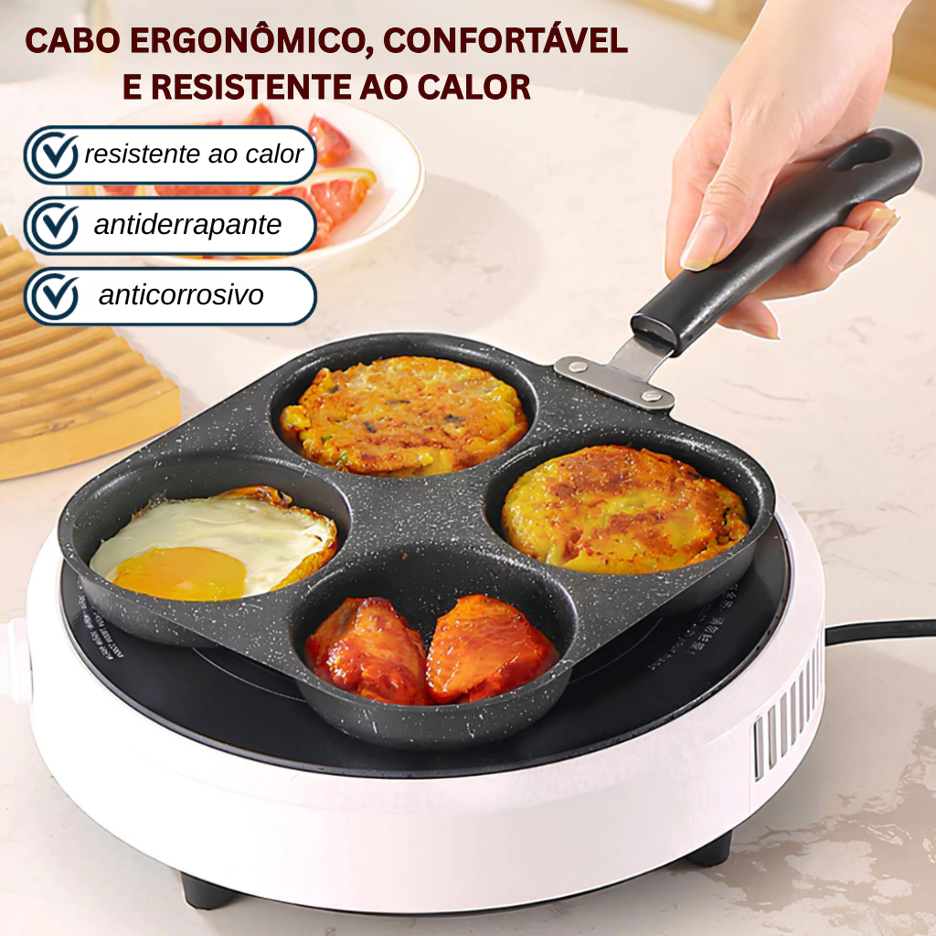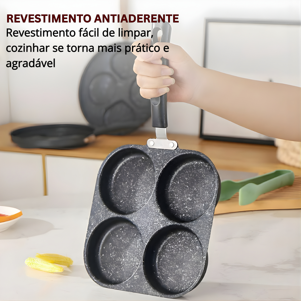 Frigideira Multifuncional Antiaderente 3 ou 4 Furos para Ovos Panqueca Omelete e Hambúrguer