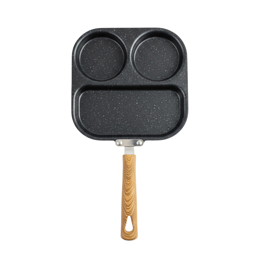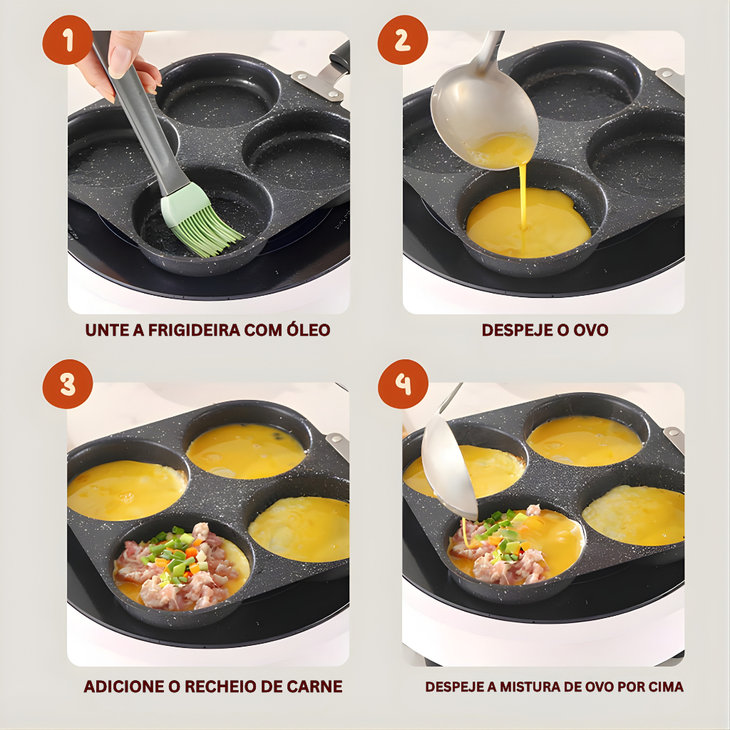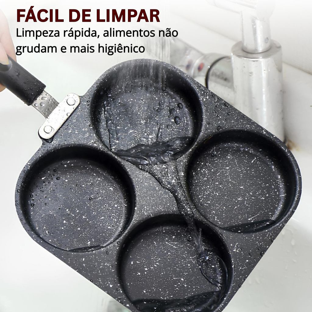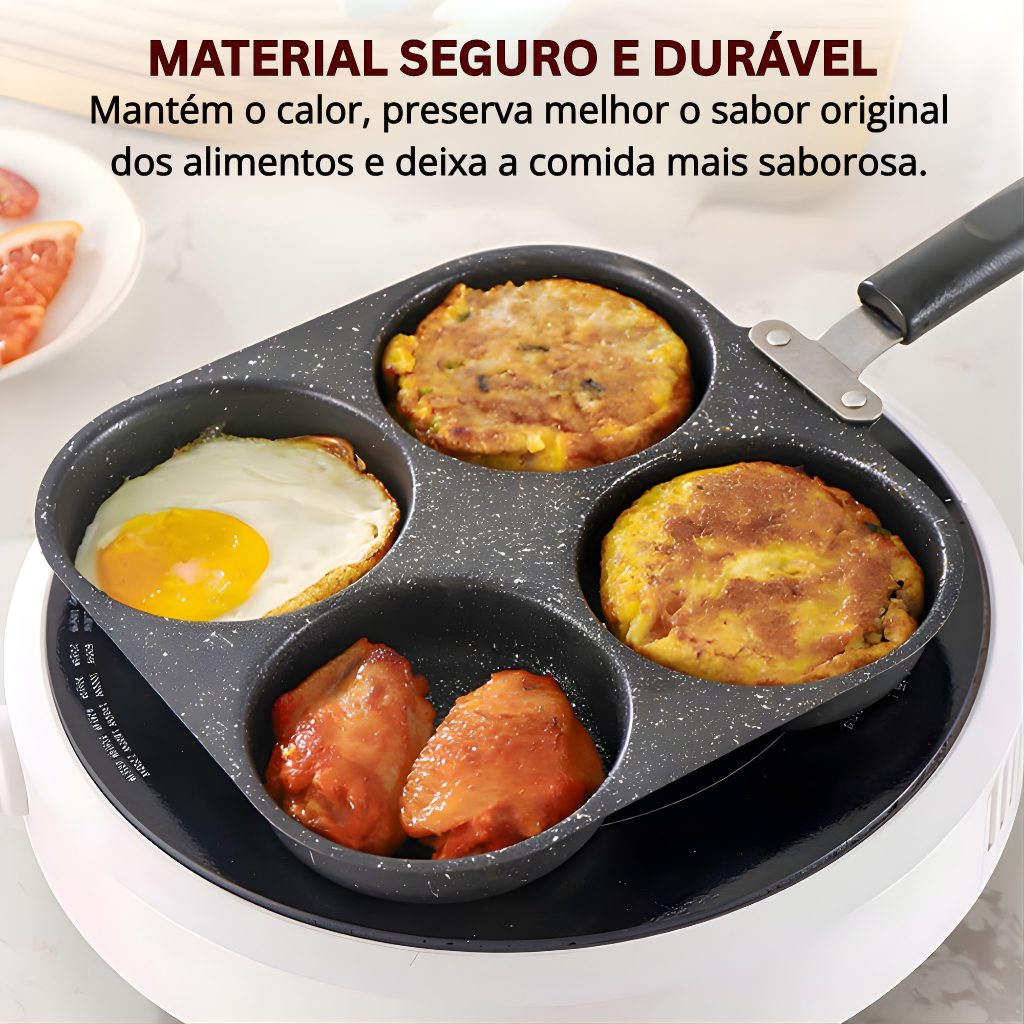 Frigideira Multifuncional Antiaderente 3 ou 4 Furos para Ovos Panqueca Omelete e Hambúrguer