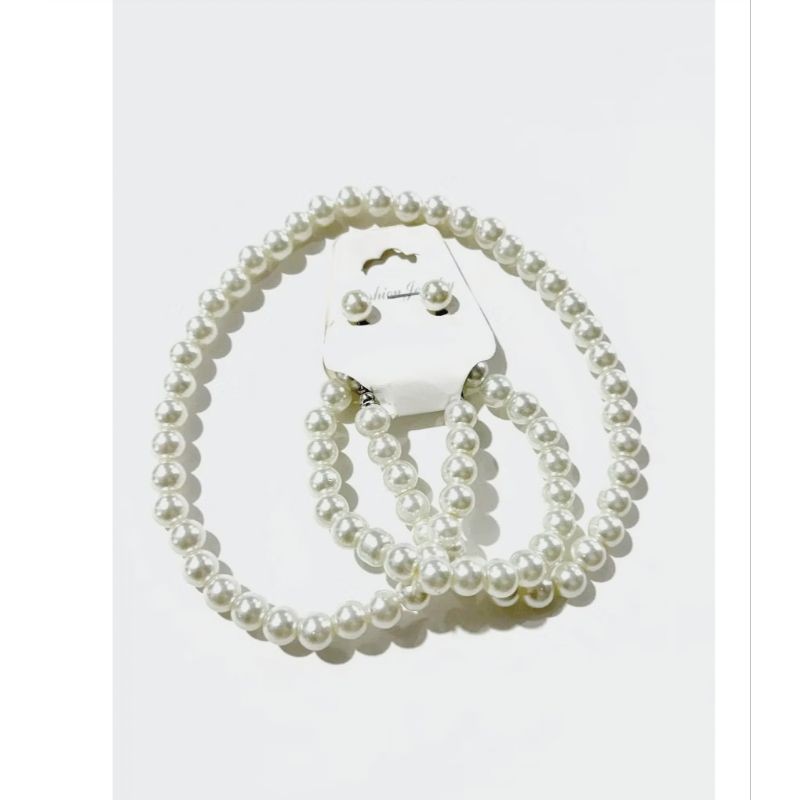 Kit com Brinco Colar e Pulseira de Pérola Kit Retrô Anos 60