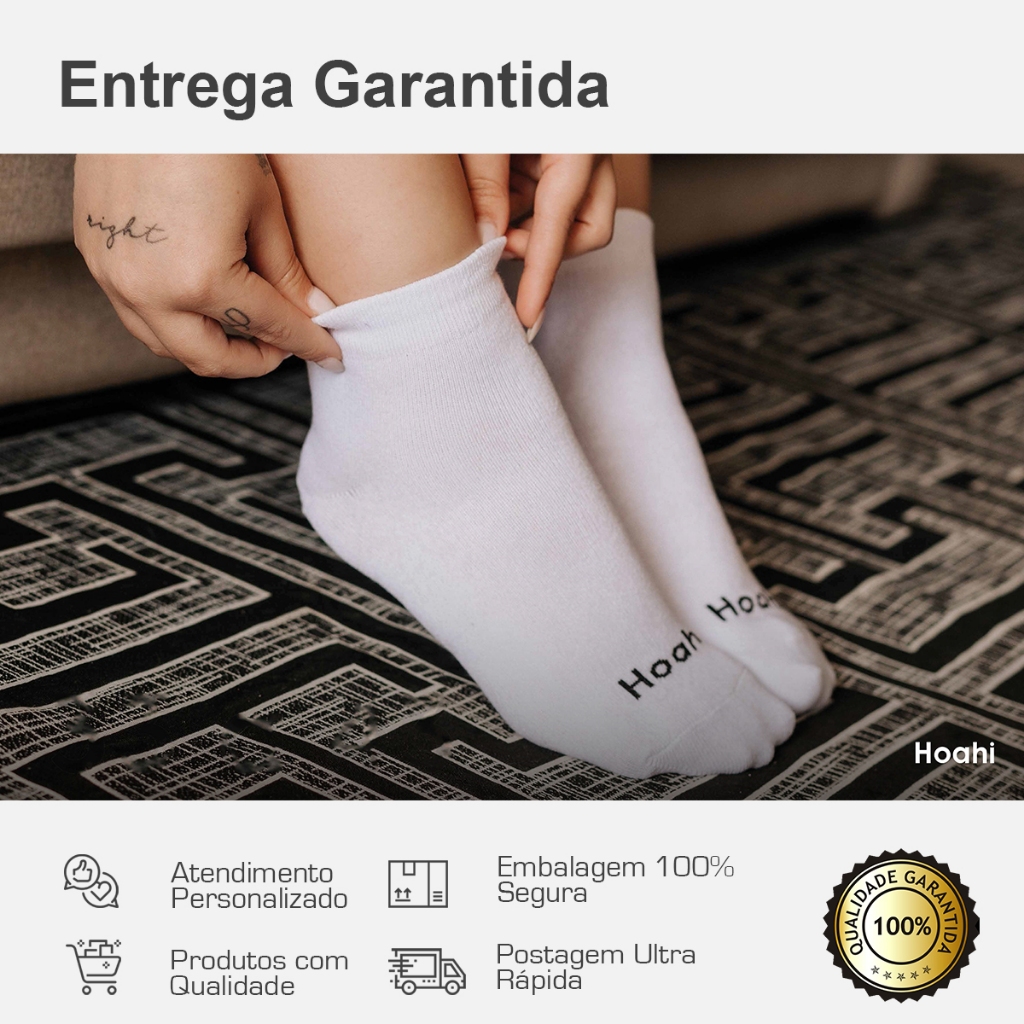 Kit 6 Pares Meias Algodão Invisíveis Elastano Calcanhar Verdadeiro Confortáveis Hoahi