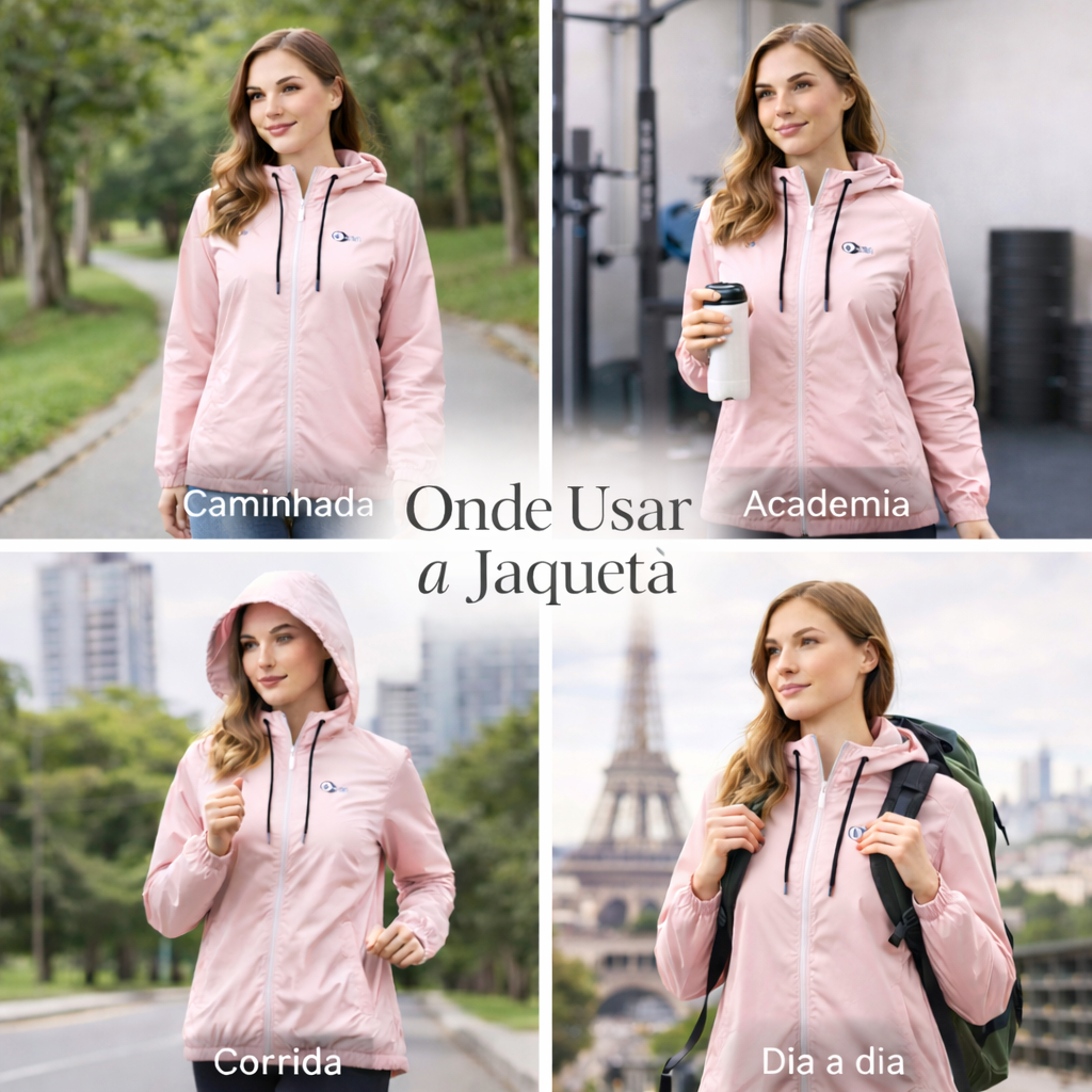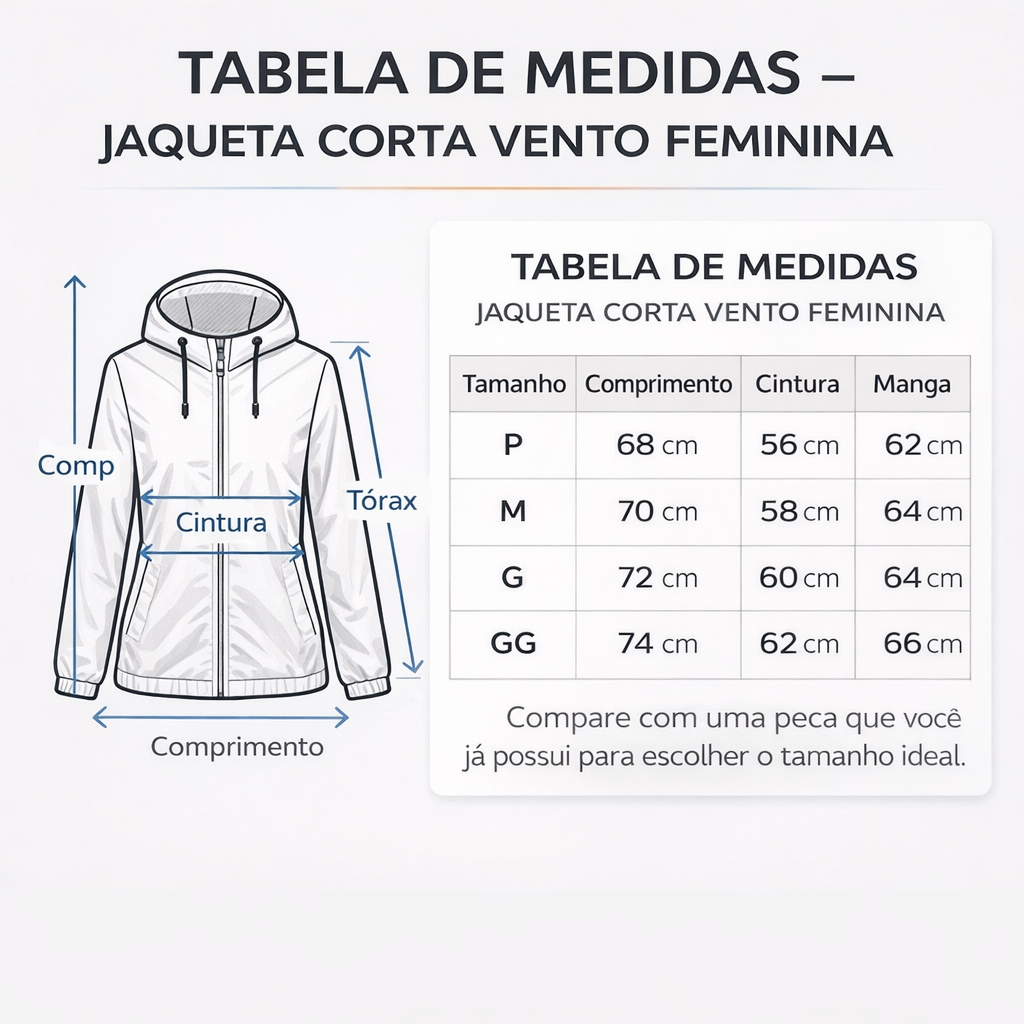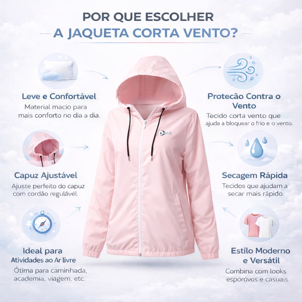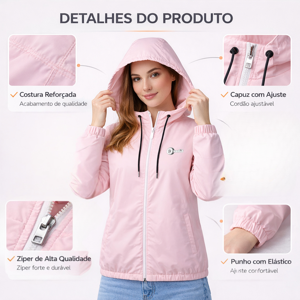 Jaqueta Corta Vento Feminino Repelente a Agua Super Leve Facil de Guardar Não Amassa Capuz Forrado