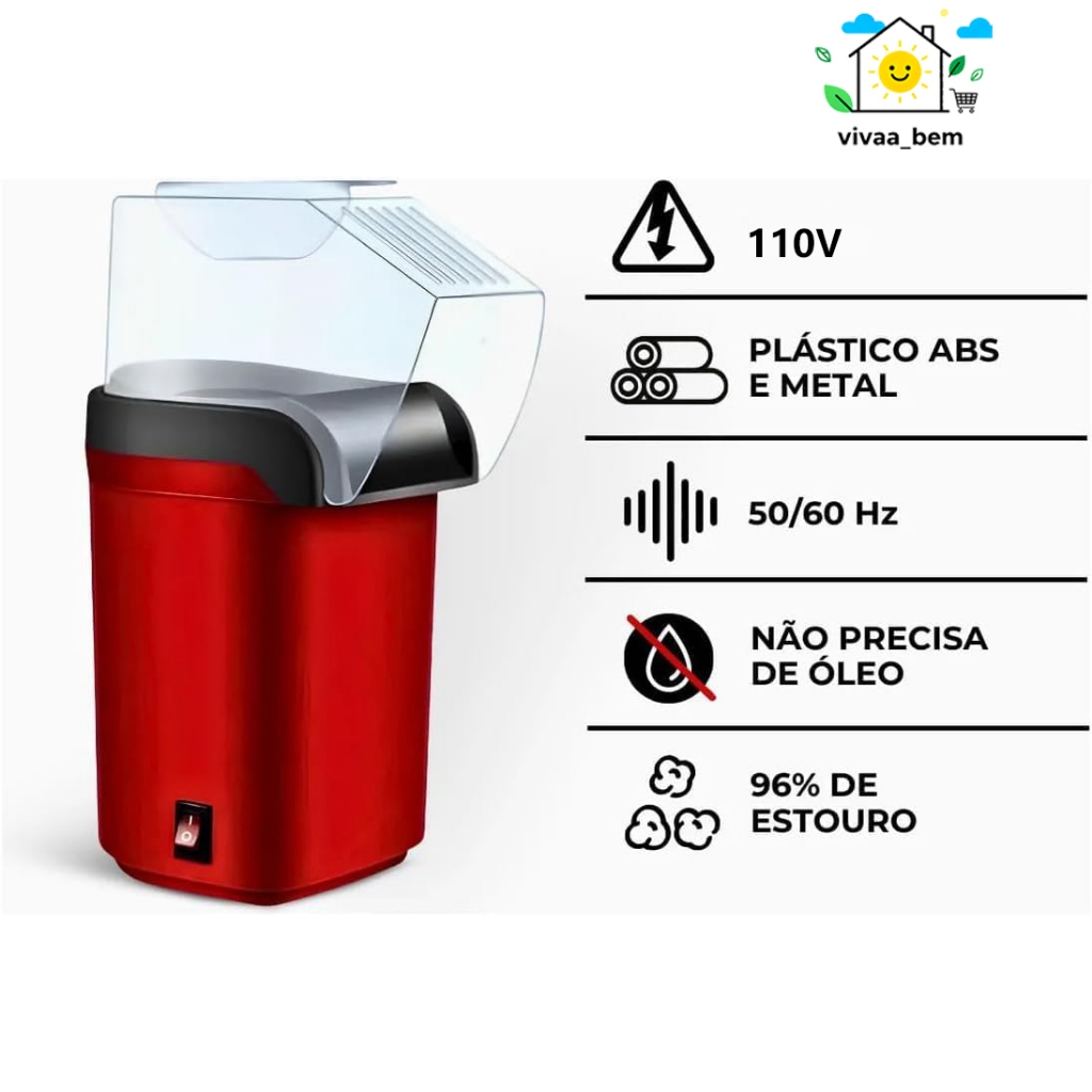Pipoqueira Elétrica Ar Quente Máquina Fazer Pipoca Sem Óleo Minijoy - 110v 1200W