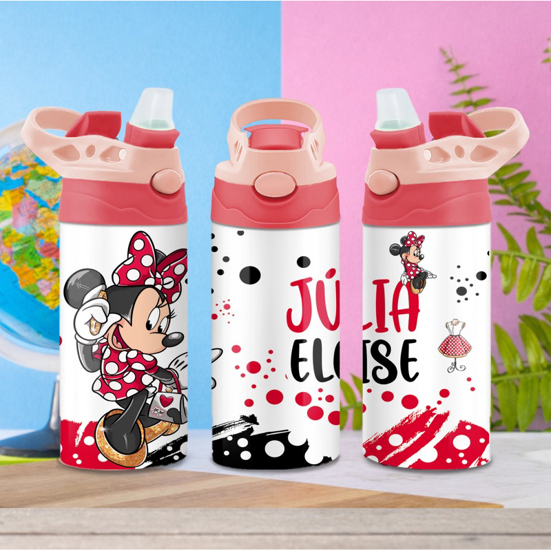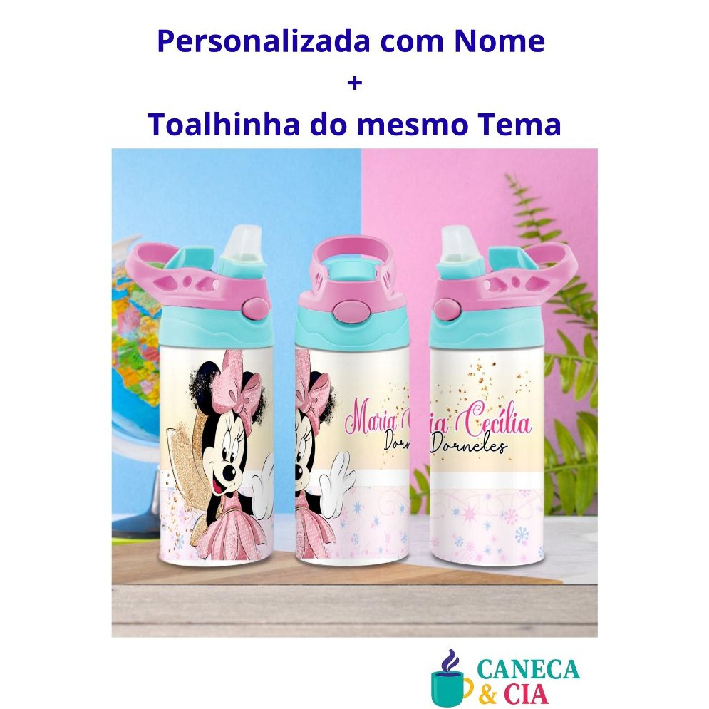 Garrafinha Personalizada Infantil + Toalhinha Volta às Aulas | Mickey Minnie | Nome Personalizado | Squeeze Escolar