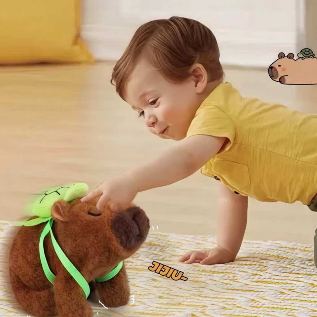 Capivara de Pelúcia Eletrônica com Tartaruga – Anda e Emite Som