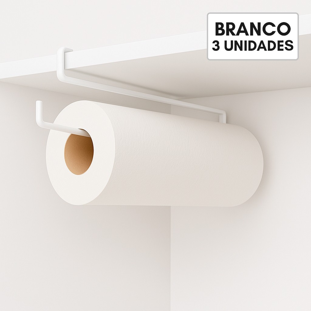 Kit 3 Porta Papel Toalha Suspenso Armário Cozinha Organizador Sem Furo Rolo Alumínio Filme Cromado