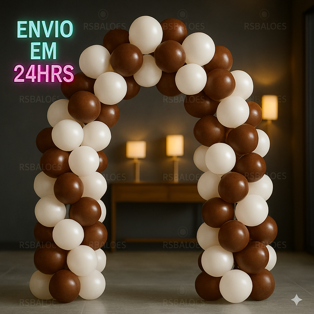 Kit 100 Balões Bexiga látex 6.5 Branco e Marrom Decoração Festa Enfeites Aniversário Eventos