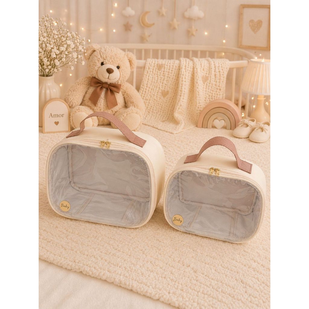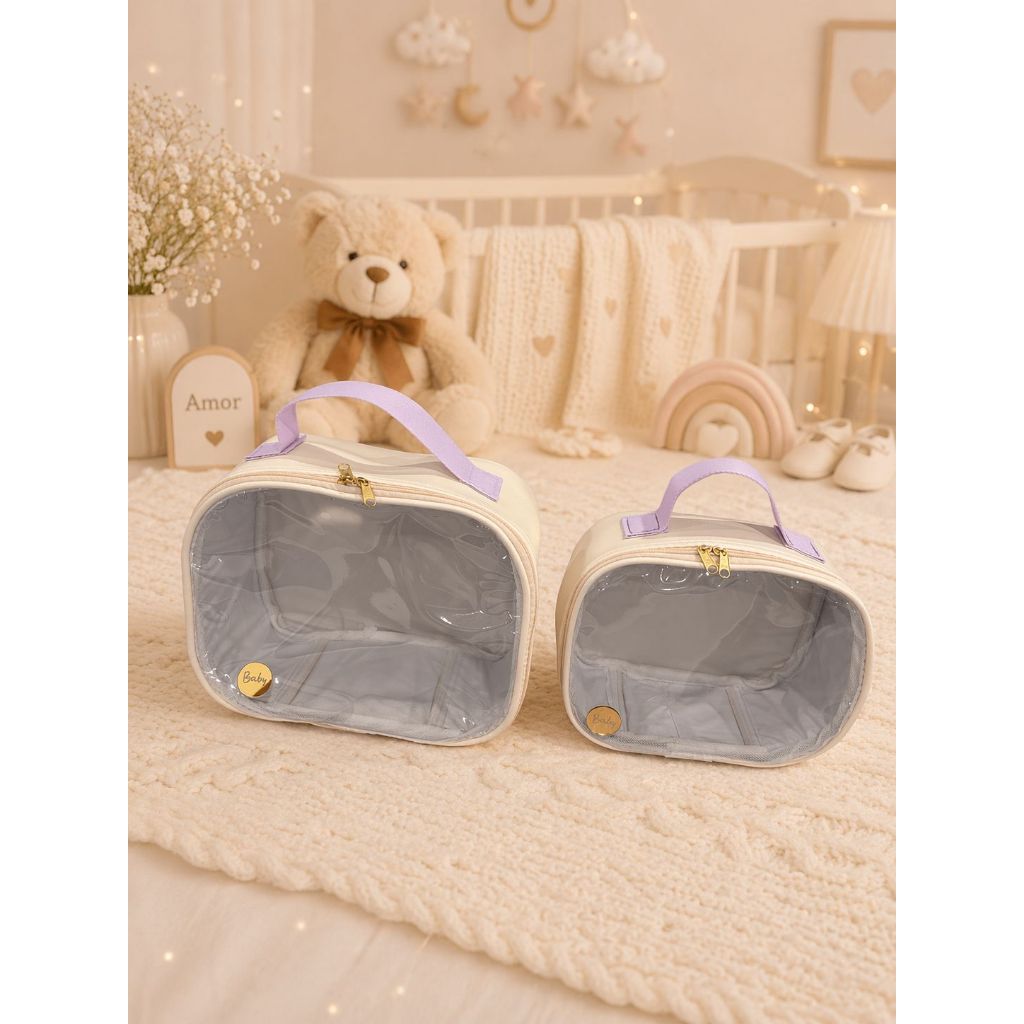 kit necessaire transparente 2 peças maleta organizadora fraldas e remédios