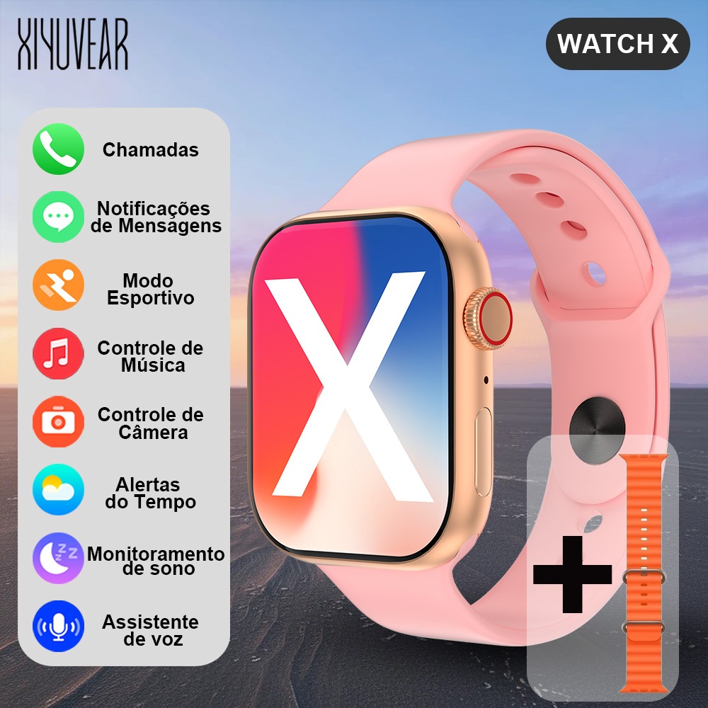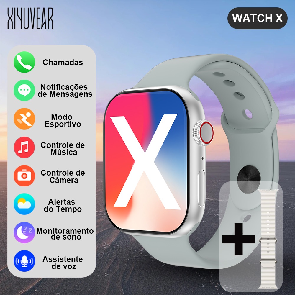 Smartwatch Watch X. Custo-Benefício Top! Monitora FC/Oxigênio, IP65, Autonomia 3-5 Dias, iOS/Android