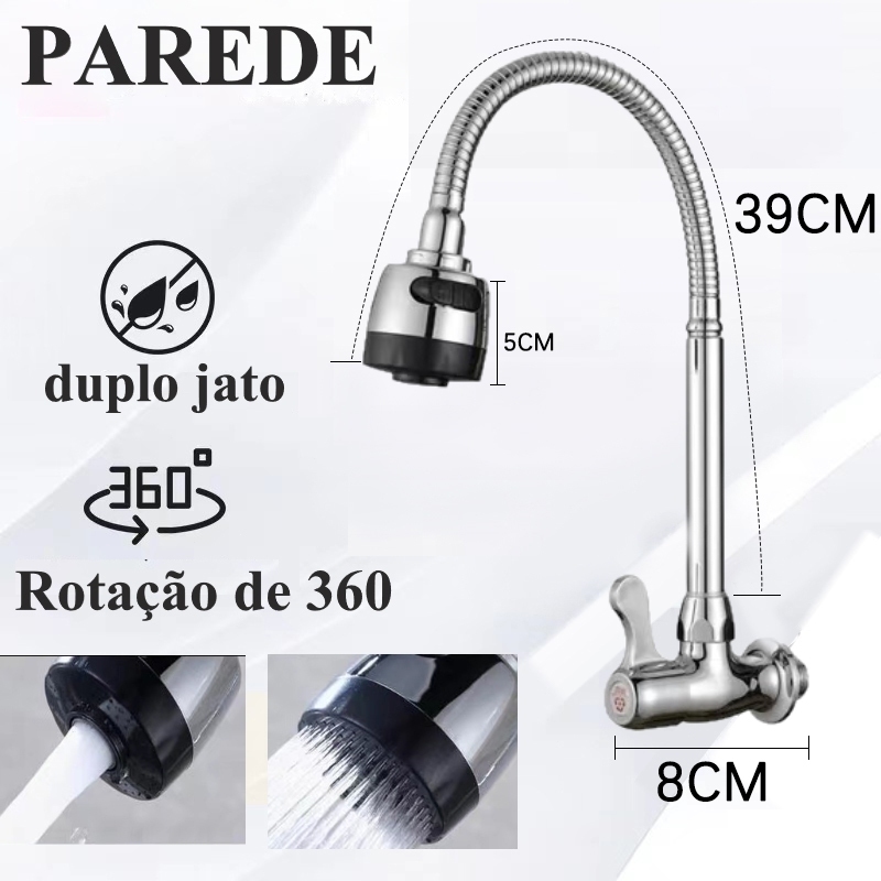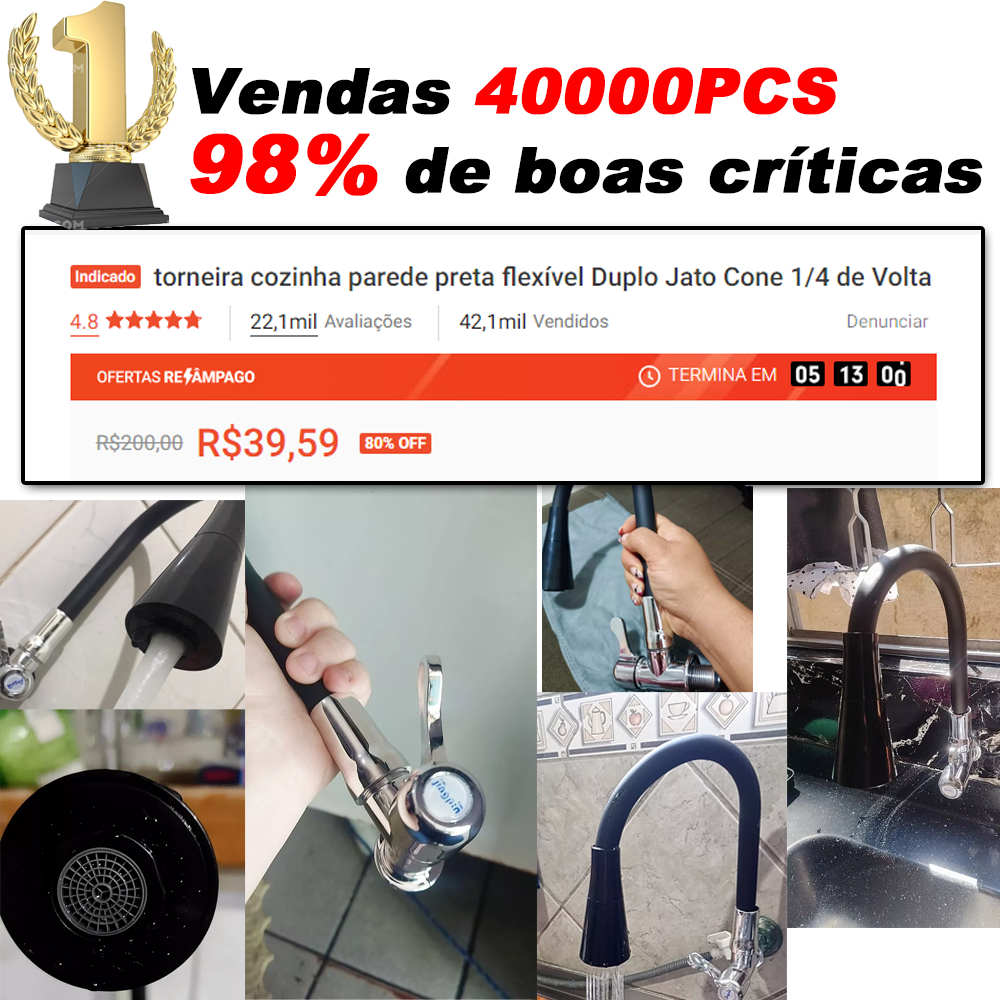 torneira cozinha parede preta flexível Duplo Jato Cone 1/4 de Volta