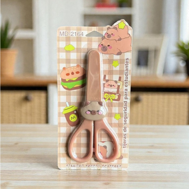 Tesoura Infantil Stitch & Lilo Desenho & Cabybara com Capa Protetora - Material Escolar - Papelaria Fofa