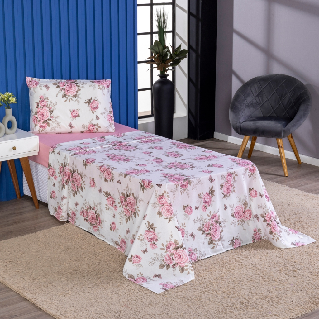 Jogo De Cama Solteiro 3 Peças Percal 100% Algodão 180 Fios