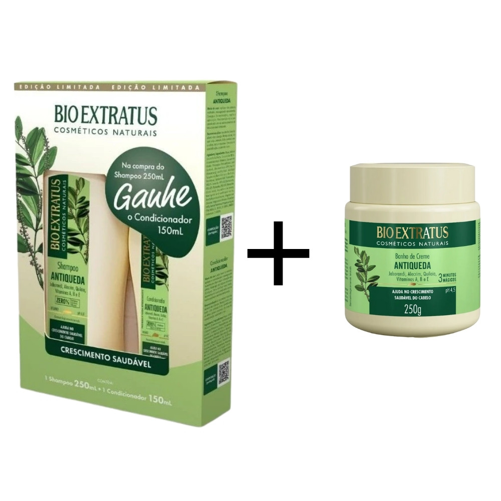 Kit Bio Extratus Jaborandi - Antiqueda Shampoo 250ml + Condicionador 150ml + Banho de Creme 250g