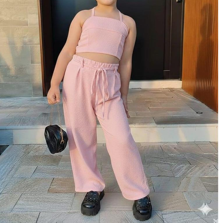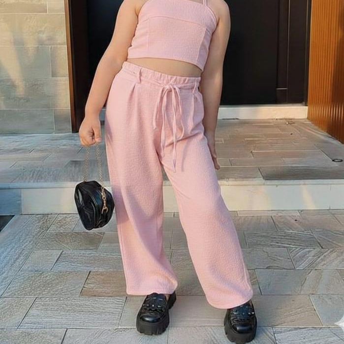 Conjunto Infantil Feminino Rosa Moderno – Cropped + Calça Pantalona | Moda Infantil**&