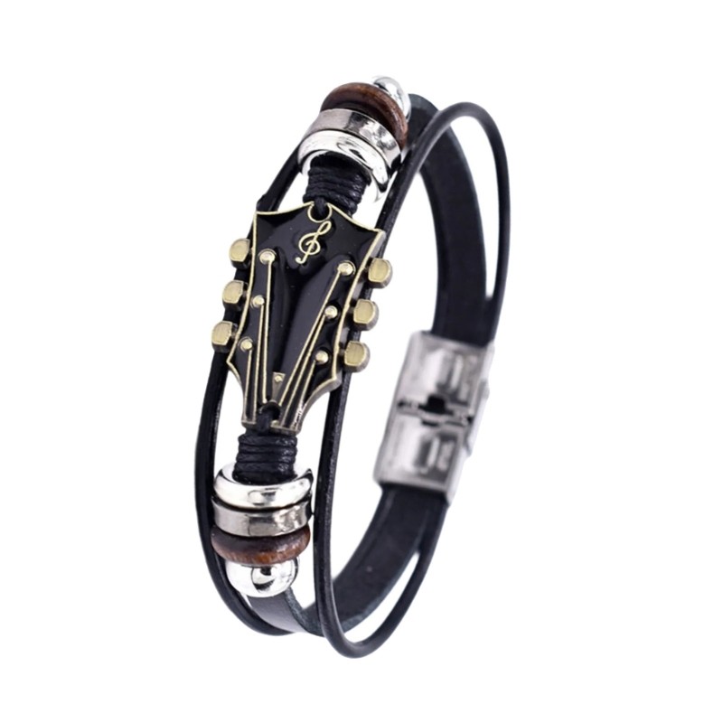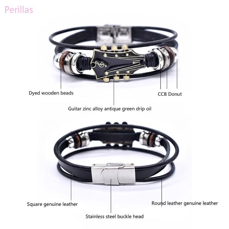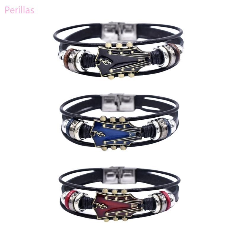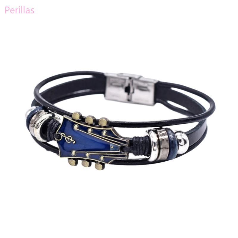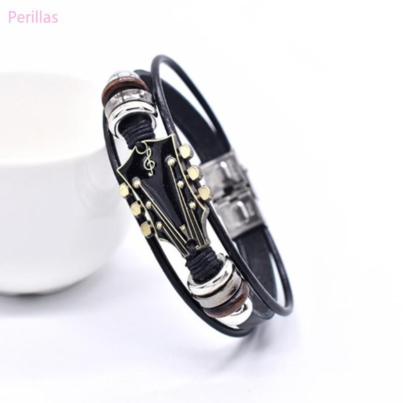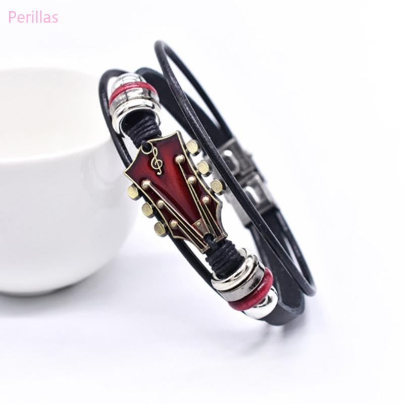 Pulseira Couro Perillas Joias Mão Pulso Tema Guitarra Multicamadas