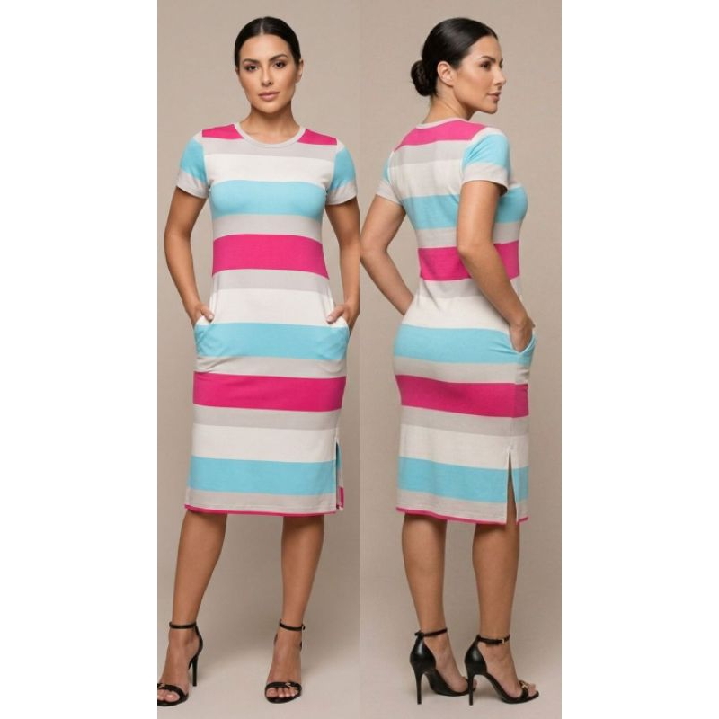 Vestido midi de bolso moda Evangélica, tamanho único G veste do 40 ao 44 ,tecido visco lycra