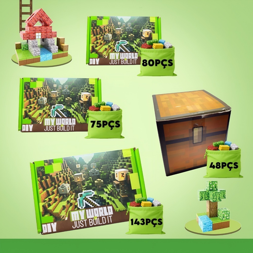 Kit 128/144/192/212/224/480 Blocos Mundo Magnéticos Cubos De Construção Brinquedo Infantil Educativo Monte Cenários