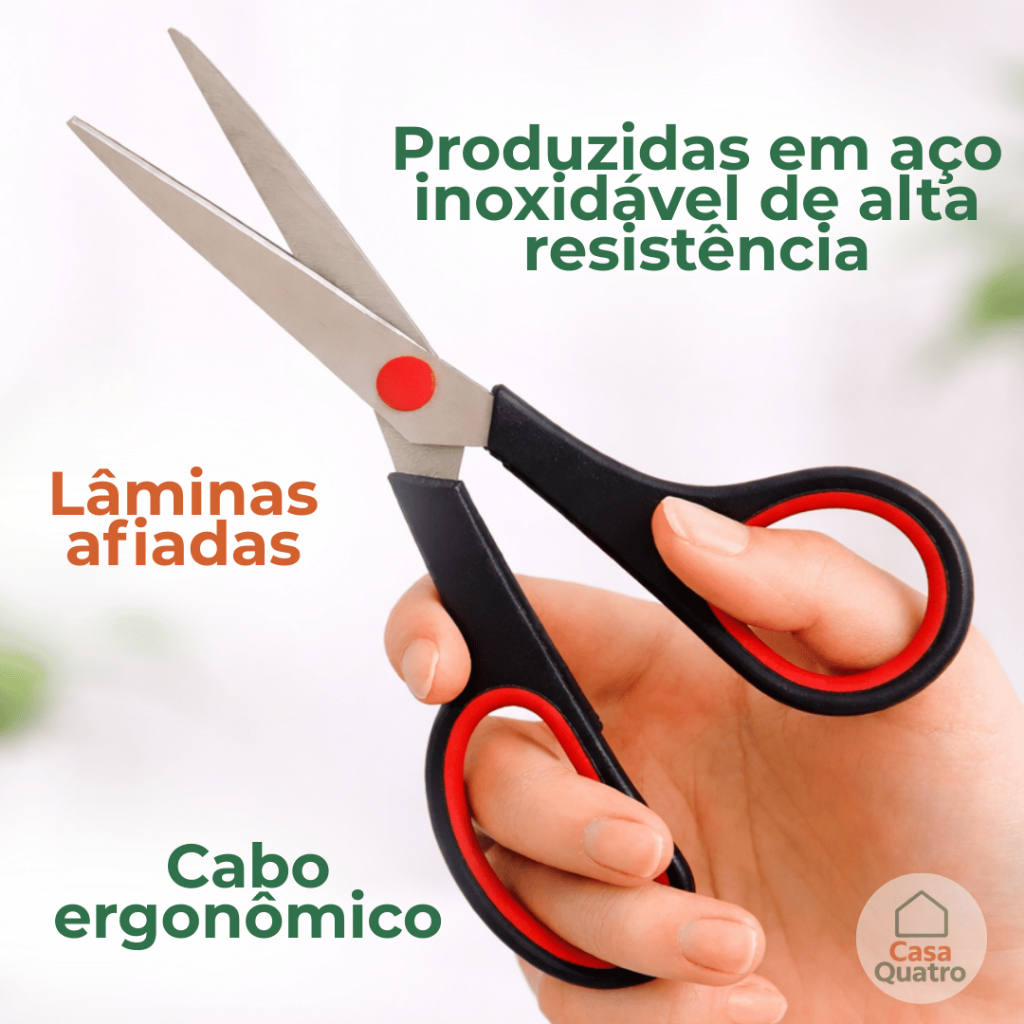 Kit 4 Tesouras Multiuso Domestico Cabo Ergonômico Versátil Aço Inox