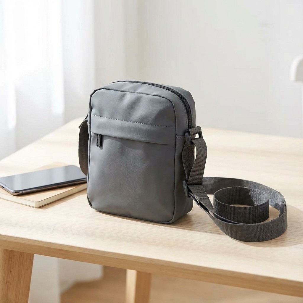Bolsa Masculina Transversal Pequena Impermeável 20cm De Nylon Com Zíper Duplo Alça Ajustável Para Viagem E Passeio
