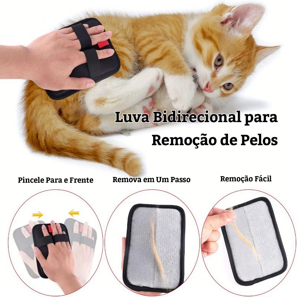 Luva para Remoção de Pelos de Pets Macia para Gatos e Cães Lavável Remove Pelos de Sofás e Roupas